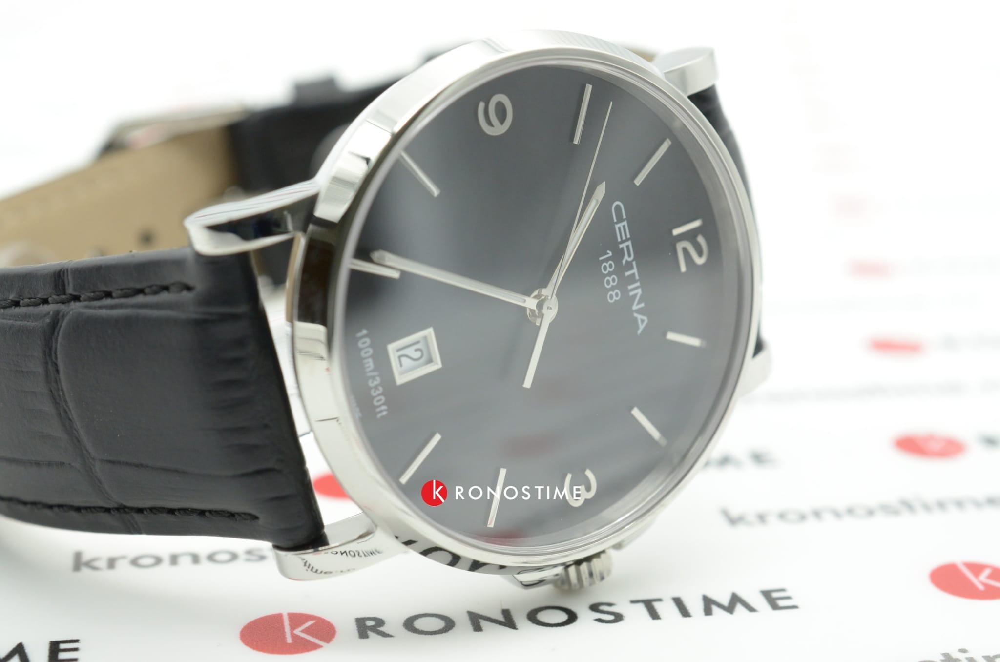 Брендовый аксессуар в чёрной цветовой гамме отличается безупречным качеством ввиду применения надёжных современных материалов: стекло из сапфира, устойчивое к появлению царапин, натуральная кожа для изготовления ремешка, прочный корпус из хирургической стали 316L. Швейцарский кварцевый калибр ETA F06.111 обеспечивает абсолютную точность показаний. Сохранение водонепроницаемости до 10 бар. Система DS ConceptDS ConceptDouble Security Concept, обозначает двойную надёжность и безупречную точность часов Certina. Двойная система защиты подразумевает обеспечение максимальной устойчивости к ударам и высоких показателей водонепроницаемости.. Отображение текущего числа, функция EOLEOLПредставляет собой систему, уведомляющую владельца часов о необходимости замены элемента питания. За 2 недели до полного разряда батарейки секундная стрелка перестаёт ходить чётко и начинает перепрыгивать на 3-4 деления.. Диаметр корпуса: 38 мм.