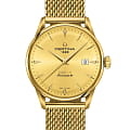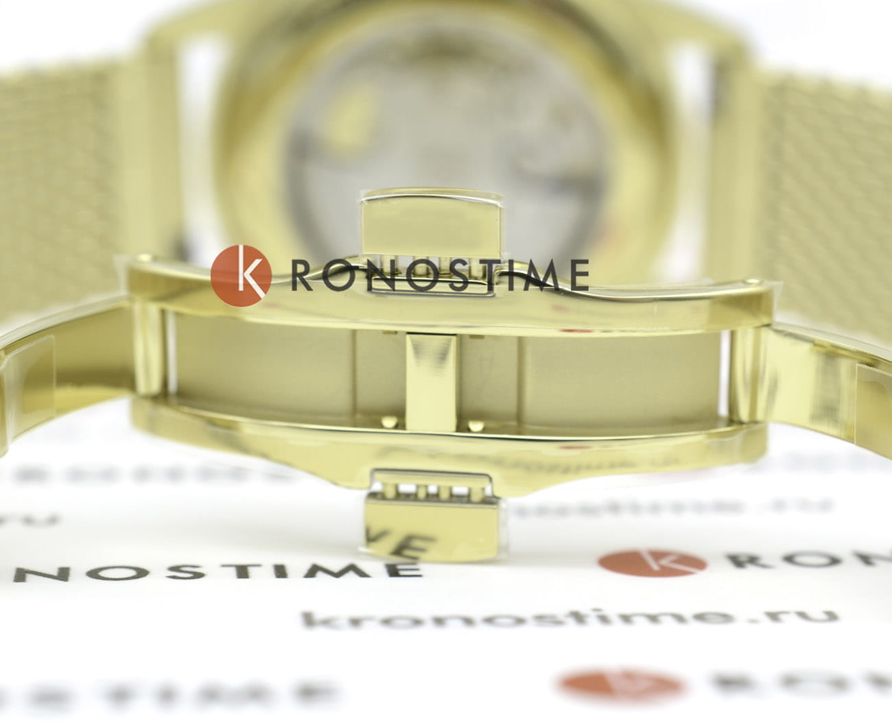 Корпус изготовлен из нержавеющей стали с PVD-покрытиемPVDУльтратонкое покрытие наносится в технике вакуумного напыления, сочетает в себе нитрид титана особой прочности со слоем золота или оксида хрома. Несёт в себе декоративную или защитную функцию.. Окошко даты находится в положении 3 часа. Класс водозащиты: 100 метров, позволит плавать, нырять и заниматься другими водными видами спорта. Стальной браслет с PVD-покрытиемPVDУльтратонкое покрытие наносится в технике вакуумного напыления, сочетает в себе нитрид титана особой прочности со слоем золота или оксида хрома. Несёт в себе декоративную или защитную функцию. на застёжка «бабочка» с кнопкамиЗастёжка "бабочка"Такой вид застёжки дополняется предохранителями, помогающими избежать случайного раскрытия браслета. Обладают изящным исполнением. .
