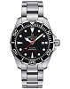 Стильный аксессуар воплощает собой дайверскую тематику, он способен сохранять водостойкость при давлении до 30 бар. Лаконично выглядит чёрный циферблат с красной секундной стрелкой в сочетании с серебристым блеском нержавеющей стали, из которой изготовлены ударопрочный корпусУдаропрочный корпусМеханизм заключён в корпус, выполненный из современных материалов, устойчивых к ударам, механическим повреждениям и падению с высоты: инновационный пластик, карбон, нержавеющая сталь, титан. и браслет. Наручные часы оснащены швейцарским механизмом ETA Powermatic 80Powermatic 80Эксклюзивный калибр от швейцарской компании ETA с увеличенным запасом хода до 80 часов за счёт удлинённой заводной пружины. Характеризуется улучшенной системой спуска со сниженным трением. с 80-часовым запасом хода. Завинчивающаяся заводная головка с системой защиты. Антибликовое покрытие сапфирового стекла. Люминесцентная подсветкаЛюминесцентное покрытиеПозволяет считывать показания времени в темноте. Производители наносят на стрелки, часовые индексы, безель или поверхность циферблата светонакопительный состав, дающий холодное свечение. стрелок и меток. Надёжная застежка с фиксатором и удлинением для дайверовУдлинение для дайверовЗастёжка с удлинением для дайверов представляет собой безопасное крепление, которое позволяет надевать часы поверх гидрокостюма. Гибкая застёжка удлиняется на 1-2 миллиметра.. Однонаправленно вращающийся алюминиевый безельБезельВнешний ободок, закрепляющий стекло. В спортивных часах так называется поворотное кольцо с делениями на циферблате, выполняет роль таймера – замеряет отрезки времени на шкале. Неподвижный безель – элемент декора. Однонаправленно вращающийся безель на дайверских часах позволяет фиксировать моменты погружения и выныривания на поверхность.. Диаметр корпуса: 43 мм.