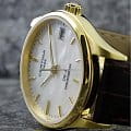 Изящный калибр, четкие линии и металлические акценты делают эту женскую модель часов с кварцевым часовым механизмом, сертифицированным COSC, элегантным и точным аксессуаром на любой случай