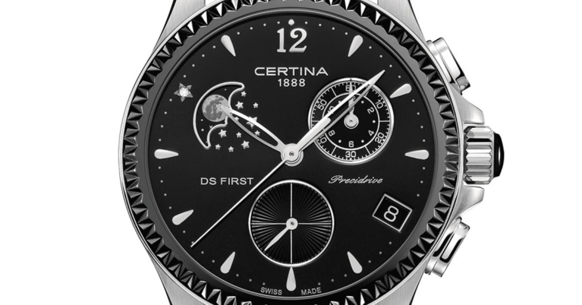Женские швейцарские часы Certina DS First Lady Chronograph Moon Phase C030.250.16.056.00 из коллекции DS First привлекают эксклюзивным дизайном.