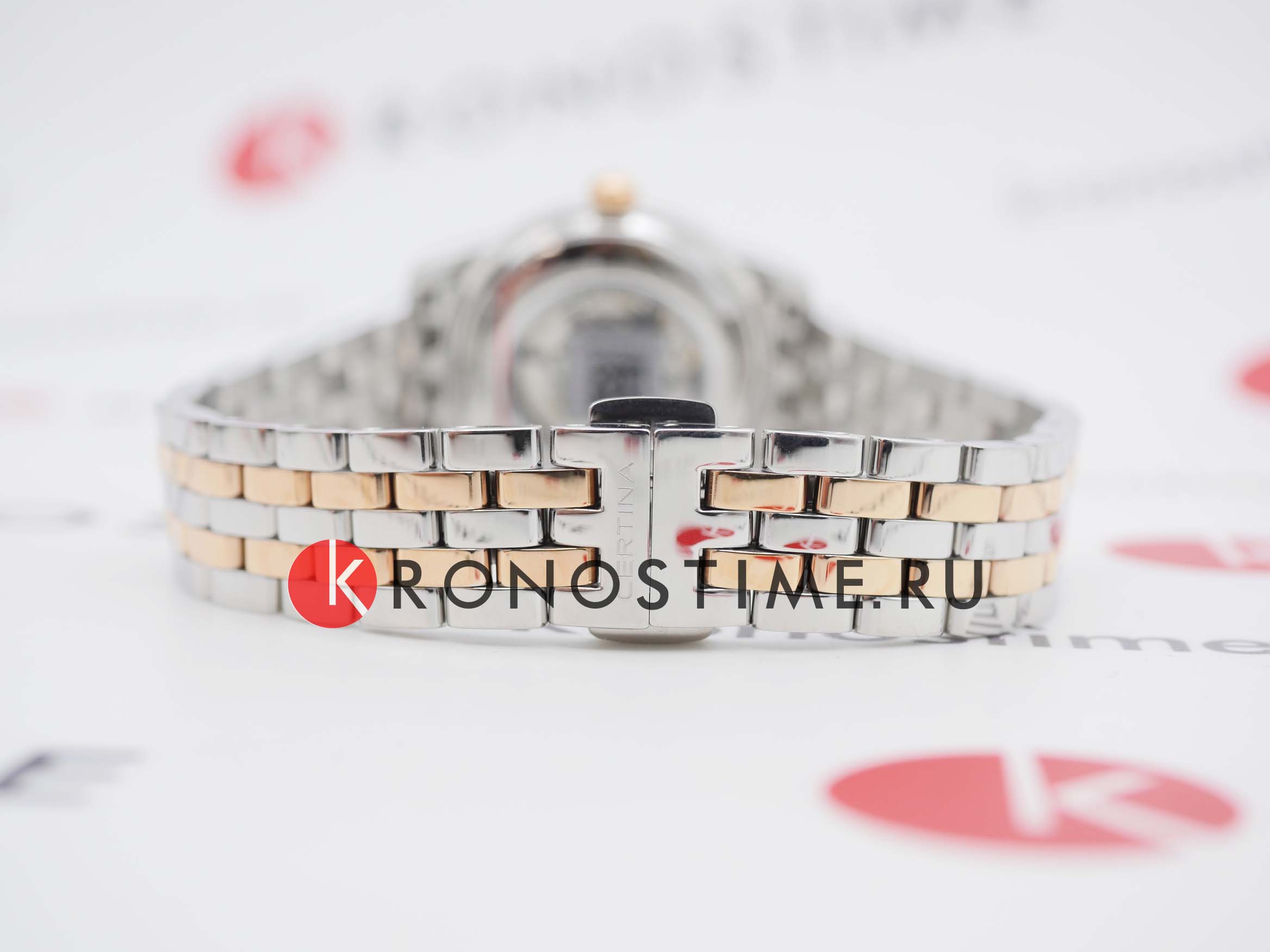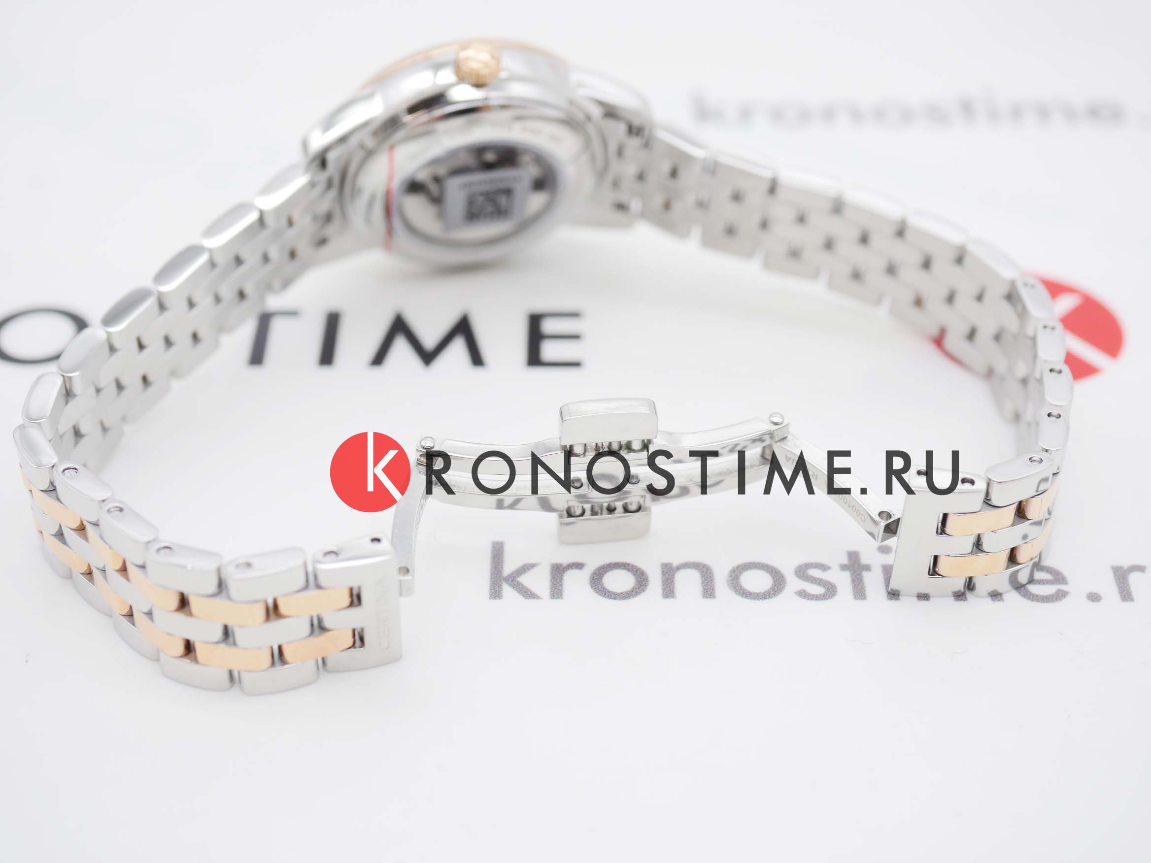 Элегантный аксессуар обладает вневременным дизайном, белый циферблат дополнен римскими цифрами с винтажным оттенком. Часы с автоматической системой завода для своей работы используют энергию от движений руки носительницы, позволяя забыть о необходимости регулярного завода. Швейцарский механизм ETA 2671 с 38-часовым запасом хода. Скелетонизированная задняя крышка. Сапфировое стеклоСапфировое стеклоПрочный и надёжный материал из кристалла сапфира синтетического происхождения, характеризующийся особой твёрдостью и устойчивостью к царапинам и повреждениям. с двухсторонней обработкой «антиблик». Концепция Double SecurityDS ConceptDouble Security Concept, обозначает двойную надёжность и безупречную точность часов Certina. Двойная система защиты подразумевает обеспечение максимальной устойчивости к ударам и высоких показателей водонепроницаемости.. Корпус и браслет из нержавеющей стали 316L с PVD-покрытиемPVDУльтратонкое покрытие наносится в технике вакуумного напыления, сочетает в себе нитрид титана особой прочности со слоем золота или оксида хрома. Несёт в себе декоративную или защитную функцию. «розовое золото». Водозащита 100 метров. Застёжка «бабочка» с кнопкамиЗастёжка "бабочка"Такой вид застёжки дополняется предохранителями, помогающими избежать случайного раскрытия браслета. Обладают изящным исполнением. . Отображение числа. Диаметр корпуса: 29 мм.
