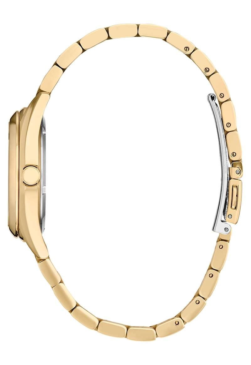 Часы Citizen EW2702-59D гармонично сочетают элегантность и современные технологии, привлекая внимание изысканным дизайном. Круглый корпус диаметром 33 мм и толщиной 8 мм выполнен из нержавеющей стали с золотистым IP-покрытиемIP-покрытиеМетод ионного напыления. Демонстрирует повышенную устойчивость к истиранию, окислению и химическим веществам. Под воздействием высокого давления и температуры около 1500°C молекулы металла надёжно соединяются с частицами корпуса часов., что придаёт аксессуару изящный и утончённый вид. Перламутровый циферблат украшен восемью настоящими бриллиантами, выступающими в роли часовых индексов, а также дополнен окошком даты, расположенным на отметке 3 часа. Модель оснащена японским кварцевым механизмом, обеспечивающим высокую точность и надёжность хода. Прочное сапфировое стеклоСапфировое стеклоПрочный и надёжный материал из кристалла сапфира синтетического происхождения, характеризующийся особой твёрдостью и устойчивостью к царапинам и повреждениям. защищает циферблат от царапин и других внешних воздействий, сохраняя его безупречный внешний вид на долгое время. Стрелки и метки с люминесцентным покрытиемЛюминесцентное покрытиеПозволяет считывать показания времени в темноте. Производители наносят на стрелки, часовые индексы, безель или поверхность циферблата светонакопительный состав, дающий холодное свечение. обеспечивают отличную читаемость времени даже в темное время суток. Стальной браслет с золотистым IP-покрытиемIP-покрытиеМетод ионного напыления. Демонстрирует повышенную устойчивость к истиранию, окислению и химическим веществам. Под воздействием высокого давления и температуры около 1500°C молекулы металла надёжно соединяются с частицами корпуса часов. и раскладной застёжкойРаскладная застёжкаТакой тип застёжки используется только на браслетах из металла. Она никогда не раскрывается полностью, происходит разделение на 2 и более частей. Раскладывающая застёжка снизит вероятность потери часов к минимуму. на кнопке гарантирует удобство и надёжную фиксацию на запястье. Водонепроницаемость уровня WR 100 позволяет использовать часы во время плавания и занятий сноркелингом, не опасаясь за их сохранность. Часы разработаны и произведены в Японии, что подтверждает их высокое качество и долговечность.