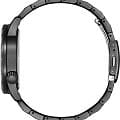 Citizen BM7555-83E — современные японские часы, сочетающие стильный дизайн и передовые технологии для динамичной жизни. Корпус и браслет выполнены из прочной нержавеющей стали с износостойким черным IP-покрытиеIP-покрытиеМетод ионного напыления. Демонстрирует повышенную устойчивость к истиранию, окислению и химическим веществам. Под воздействием высокого давления и температуры около 1500°C молекулы металла надёжно соединяются с частицами корпуса часов., что обеспечивает долговечность и презентабельный внешний вид. На безельБезельВнешний ободок, закрепляющий стекло. В спортивных часах так называется поворотное кольцо с делениями на циферблате, выполняет роль таймера – замеряет отрезки времени на шкале. Неподвижный безель – элемент декора. Однонаправленно вращающийся безель на дайверских часах позволяет фиксировать моменты погружения и выныривания на поверхность. нанесены оранжевые стрелки компаса. Кварцевый механизм Citizen E111 работает по инновационной системе Eco-Drive: часы питаются от солнечной энергии и не требуют замены батарейки, а запас хода составляет до 180 дней. Черный циферблат украшен метками в виде штрихов и арабских цифр, а также оснащён шкалой компаса для дополнительного удобства. Стрелки с люминесцентным покрытиемЛюминесцентное покрытиеПозволяет считывать показания времени в темноте. Производители наносят на стрелки, часовые индексы, безель или поверхность циферблата светонакопительный состав, дающий холодное свечение. позволяют легко определять время даже в темноте. Окно даты и рифленая заводная головка расположены в районе 4 часов для максимального комфорта в использовании. Минеральное стеклоМинеральное стеклоМинеральное стекло представляет собой искусственно выращенный минерал кварца. Такое стекло отличается особой устойчивостью к повреждениям и царапинам. Уступает по некоторым качествам сапфировому стеклу. защищает циферблат от царапин и повреждений. Водозащита до 100 метров делает модель отличным выбором для активного образа жизни. Удобная раскладная застёжкаРаскладная застёжкаТакой тип застёжки используется только на браслетах из металла. Она никогда не раскрывается полностью, происходит разделение на 2 и более частей. Раскладывающая застёжка снизит вероятность потери часов к минимуму. обеспечивает надежную фиксацию на запястье. Размер корпуса составляет 43 мм, толщина — 11,5 мм, вес — 145 грамм, что придаёт часам солидный и современный вид.