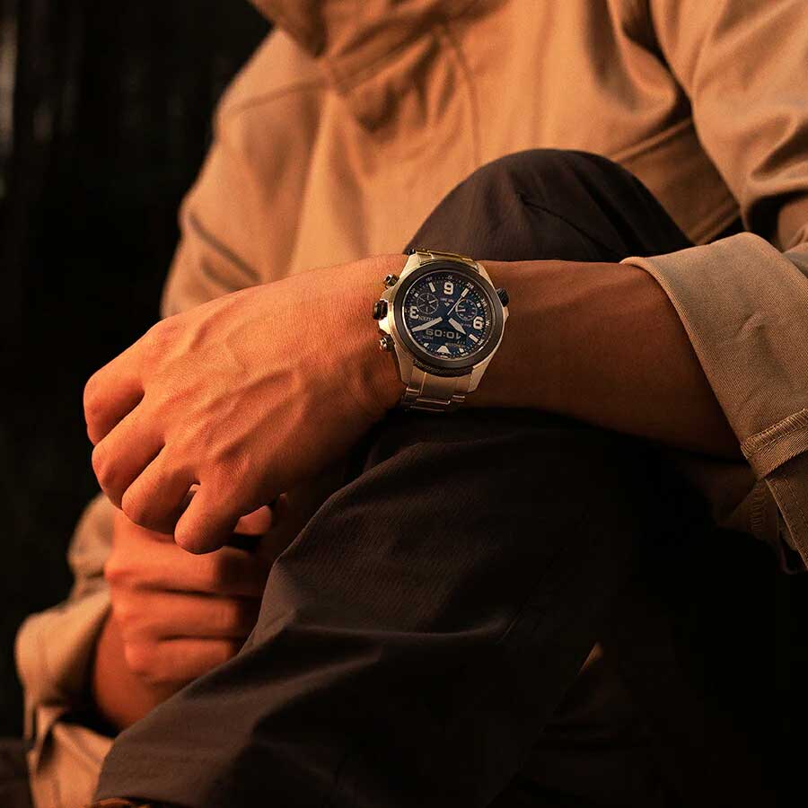 . 12-ти и 24-х часовой формат. Часы обладают впечатляющей водонепроницаемостью до 200WR, что делает их идеальными для плавания, ныряния и погружений с аквалангом.