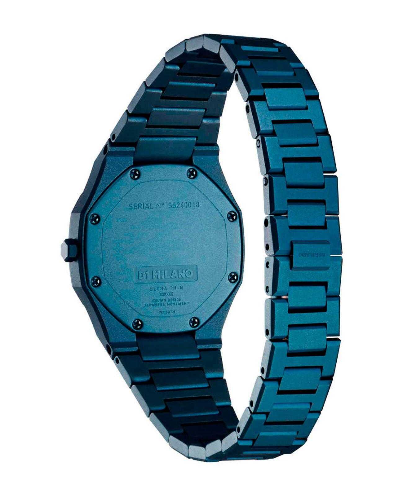 Женские наручные часы D1 Milano UTBL33 из коллекции Ultra Thin сочетают в себе элегантный дизайн и современные технологии. Модель обладает круглым корпусом диаметром 30 мм, изготовленным из нержавеющей стали с PVD-покрытиемPVDУльтратонкое покрытие наносится в технике вакуумного напыления, сочетает в себе нитрид титана особой прочности со слоем золота или оксида хрома. Несёт в себе декоративную или защитную функцию. синего цвета, что обеспечивает высокую устойчивость к внешним воздействиям. Для защиты циферблата используется сапфировое стеклоСапфировое стеклоПрочный и надёжный материал из кристалла сапфира синтетического происхождения, характеризующийся особой твёрдостью и устойчивостью к царапинам и повреждениям., которое эффективно противостоит царапинам и механическим повреждениям. Часы оснащены кварцевым механизмом Miyota 1L22, гарантирующим точное время без необходимости подзаводки. Водонепроницаемость модели достигает 5 атмосфер (50 метров), что позволяет использовать их при контакте с водой, например, во время мытья рук или дождя. Браслет выполнен из того же материала с раскладной застежкойРаскладной замокДанный вариант застежки используется только на часах с металлическим браслетом. Отличительная особенность такого крепления в том, что длина браслета становится универсальной и вы можете самостоятельно отрегулировать нужный вам размер – застежка просто двигается по браслету часов., обеспечивающей комфортное ношение и безопасность. Циферблат с узором синего цвета придает часам особую изысканность и делает их идеальным выбором для повседневного использования или особых случаев.