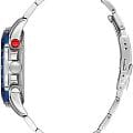 Мужские кварцевые часы Daniel Klein — это эффектный и функциональный аксессуар. Корпус диаметром 45 мм выполнен из нержавеющей стали. БезельБезельВнешний ободок, закрепляющий стекло. В спортивных часах так называется поворотное кольцо с делениями на циферблате, выполняет роль таймера – замеряет отрезки времени на шкале. Неподвижный безель – элемент декора. Однонаправленно вращающийся безель на дайверских часах позволяет фиксировать моменты погружения и выныривания на поверхность. с PVD-покрытиемPVDУльтратонкое покрытие наносится в технике вакуумного напыления, сочетает в себе нитрид титана особой прочности со слоем золота или оксида хрома. Несёт в себе декоративную или защитную функцию. изготовлен из алюминия. Циферблат синего цвета оформлен штрихами, стрелками и секундной шкалой по краю циферблата (шаг 0,2 сек). Присутствуют отдельные индикаторы дня недели и даты, а также 24-часовой формат времени. Стрелки с люминесцентным покрытиемЛюминесцентное покрытиеПозволяет считывать показания времени в темноте. Производители наносят на стрелки, часовые индексы, безель или поверхность циферблата светонакопительный состав, дающий холодное свечение., обеспечивающим хорошую читаемость в темноте. Циферблат защищён минеральным стекломМинеральное стеклоМинеральное стекло представляет собой искусственно выращенный минерал кварца. Такое стекло отличается особой устойчивостью к повреждениям и царапинам. Уступает по некоторым качествам сапфировому стеклу.. Заводная головка с защитой повышает надёжность. Часы оснащены частично полированным и сатинированным стальным браслетом на раскладной застёжкеРаскладная застёжкаТакой тип застёжки используется только на браслетах из металла. Она никогда не раскрывается полностью, происходит разделение на 2 и более частей. Раскладывающая застёжка снизит вероятность потери часов к минимуму.. Водонепроницаемость 50 м позволяет использовать часы в повседневных условиях. Идеальный выбор для тех, кто ценит турецкое качество и универсальный дизайн.