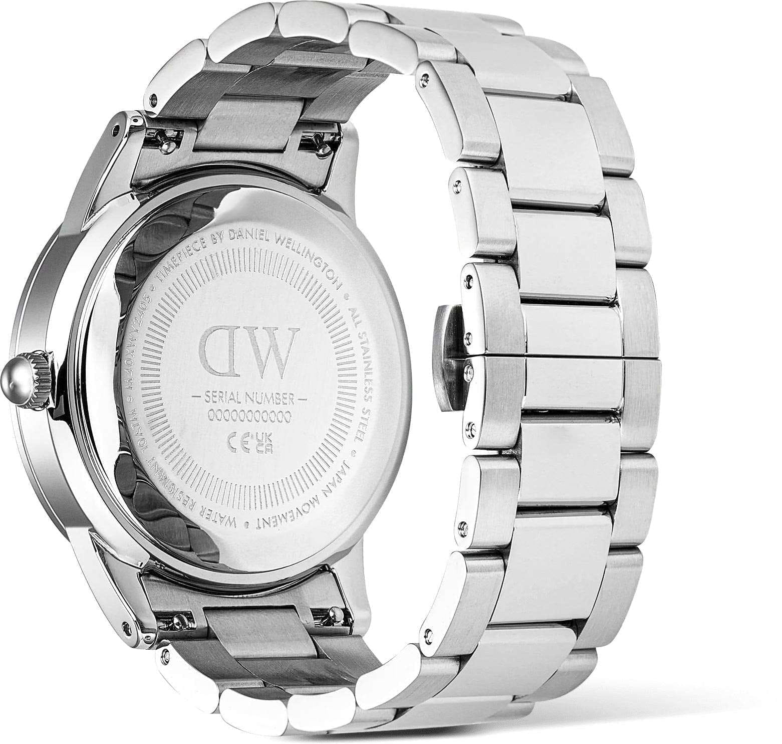 Daniel Wellington — мужские часы в современном спортивно-элегантном стиле. Круглый корпус диаметром 40 мм изготовлен из нержавеющей стали и дополнен чёрным безелемБезельВнешний ободок, закрепляющий стекло. В спортивных часах так называется поворотное кольцо с делениями на циферблате, выполняет роль таймера – замеряет отрезки времени на шкале. Неподвижный безель – элемент декора. Однонаправленно вращающийся безель на дайверских часах позволяет фиксировать моменты погружения и выныривания на поверхность. из анодированного алюминия, которое придаёт модели выразительный характер.