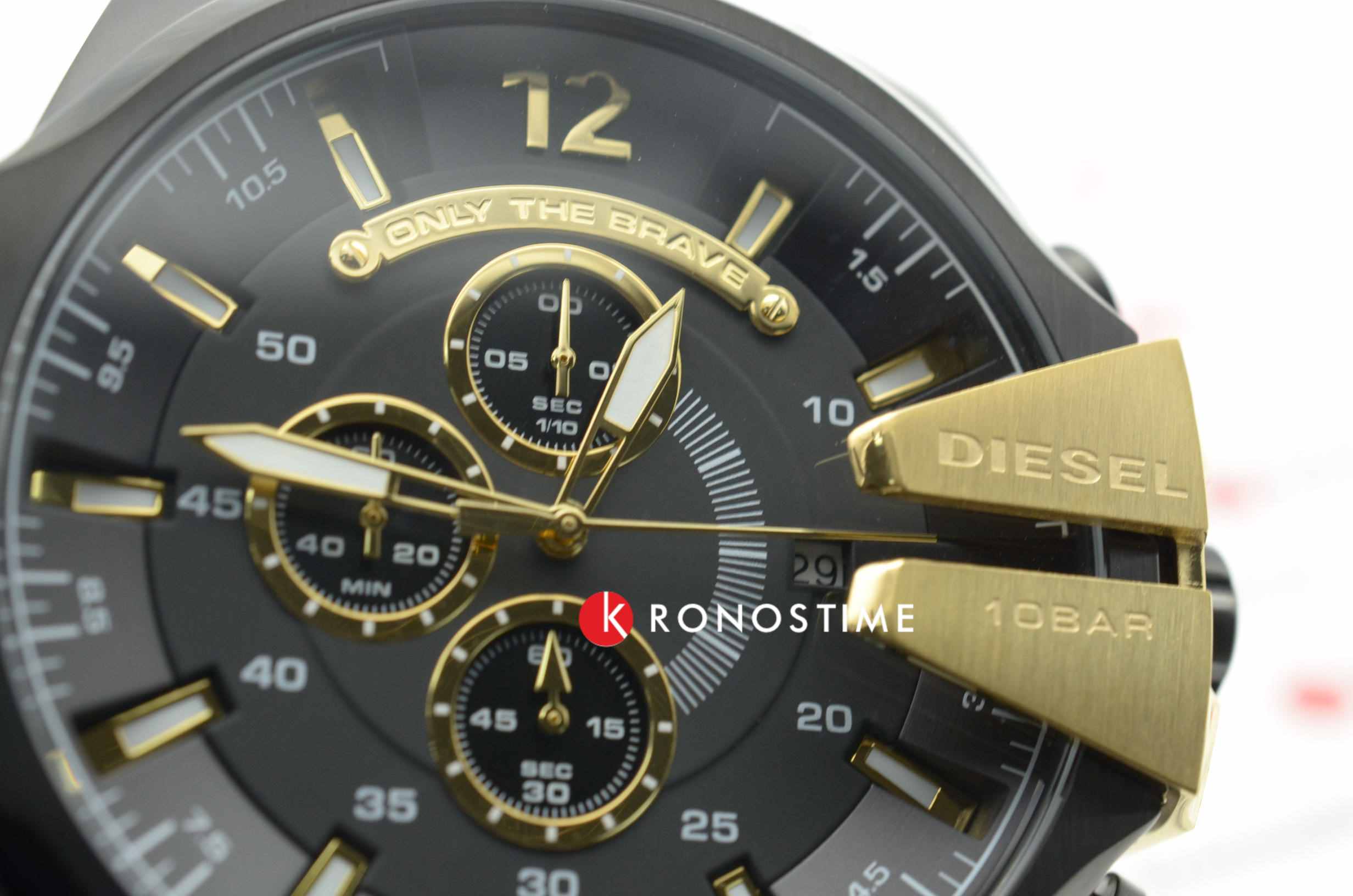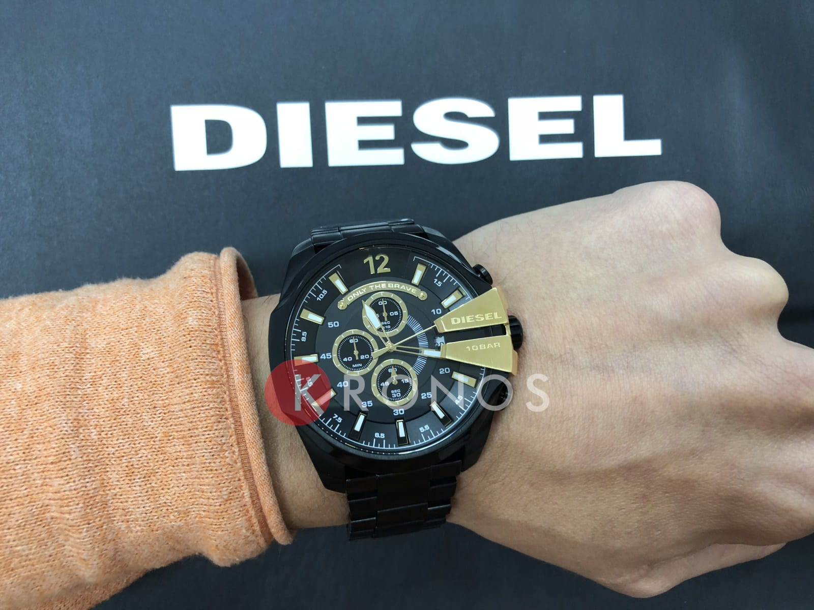 Футуристический циферблат, напоминающий приборную панель гоночного автомобиля, имеет золотистые детали оформления. Стальной корпус и браслет имеют чёрное PVD-покрытиеPVDУльтратонкое покрытие наносится в технике вакуумного напыления, сочетает в себе нитрид титана особой прочности со слоем золота или оксида хрома. Несёт в себе декоративную или защитную функцию., защищающее от царапин.. Высокоточный кварцевый механизм. Люминесцентная подсветкаЛюминесцентное покрытиеПозволяет считывать показания времени в темноте. Производители наносят на стрелки, часовые индексы, безель или поверхность циферблата светонакопительный состав, дающий холодное свечение.. Минеральное стекло. Заводная головка с защитой. Водостойкость до 100 метров. ХронографХронографФункция позволяет измерять отрезки времени с особой точностью: часы, минуты, секунды. Верным признаком хронографа является наличие на циферблате 3 дополнительных окошек-счётчиков., секундомер, отображение даты. Габариты: 55 x 51 x 14 мм.