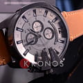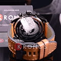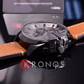 Точный кварцевый механизм. Центральная секундная стрелка. Минеральное стекло устойчивое к возникновению царапин. Светонакопительный состав на стрелках. Массивный корпус из высококачественной нержавеющей стали со стойким PVD покрытием. Водозащита до 10 АТМ. Ремешок из натуральной кожи коричневого. Часы оснащены хронографом.