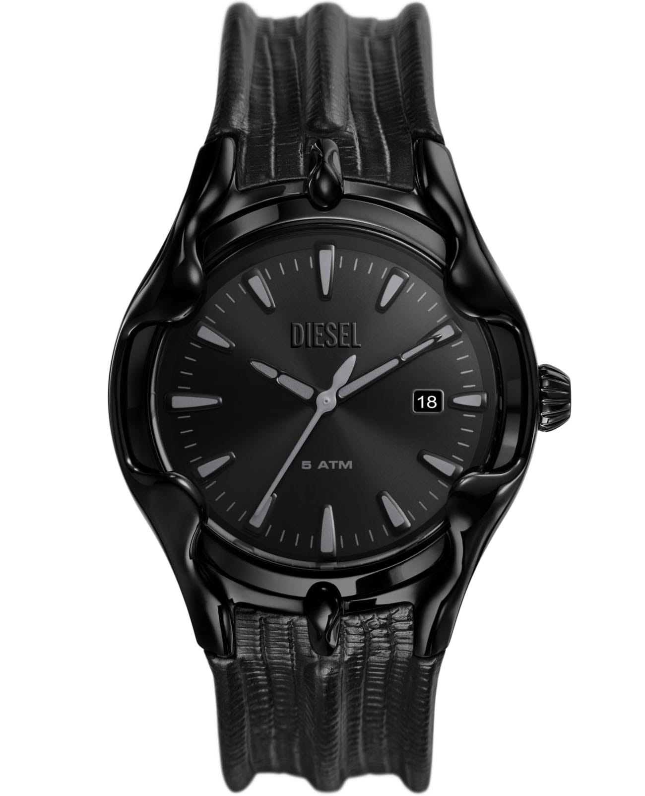 Мужские итальянские наручные часы Diesel Vert DZ2193 с надёжным кварцевым механизмом. Корпус часов изготовлен из нержавеющей стали с IP-покрытиемIP-покрытиеМетод ионного напыления. Демонстрирует повышенную устойчивость к истиранию, окислению и химическим веществам. Под воздействием высокого давления и температуры около 1500°C молекулы металла надёжно соединяются с частицами корпуса часов.. Кожаный ремешок на стандартной застёжке. Минеральное стеклоМинеральное стеклоМинеральное стекло представляет собой искусственно выращенный минерал кварца. Такое стекло отличается особой устойчивостью к повреждениям и царапинам. Уступает по некоторым качествам сапфировому стеклу. устойчивое к мелким механическим повреждениям. Стрелки и метки с люминесцентным покрытиемЛюминесцентное покрытиеПозволяет считывать показания времени в темноте. Производители наносят на стрелки, часовые индексы, безель или поверхность циферблата светонакопительный состав, дающий холодное свечение.. Окошко даты находится в положении 3 часа. Класс водозащиты: 50 метров, позволит защитить корпус от случайных брызг или капель дождя.