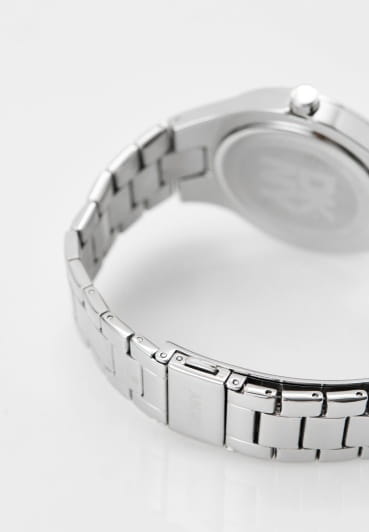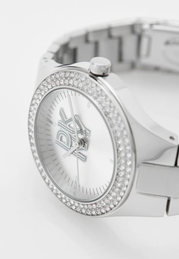 DKNY Parsons Glitz DK1L025M0015 воплощают в себе шик и изысканность. Корпус из нержавеющей стали диаметром 38 мм и минеральное стеклоМинеральное стеклоМинеральное стекло представляет собой искусственно выращенный минерал кварца. Такое стекло отличается особой устойчивостью к повреждениям и царапинам. Уступает по некоторым качествам сапфировому стеклу. обеспечивает защиту от царапин, а водонепроницаемость до 50 метров делает модель практичной для активного отдыха или повседневной носки. Браслет из нержавеющей стали на раскладной застёжкеРаскладная застёжкаТакой тип застёжки используется только на браслетах из металла. Она никогда не раскрывается полностью, происходит разделение на 2 и более частей. Раскладывающая застёжка снизит вероятность потери часов к минимуму. надежно фиксирует часы на руке и подчёркивает женственность дизайна. БезельБезельВнешний ободок, закрепляющий стекло. В спортивных часах так называется поворотное кольцо с делениями на циферблате, выполняет роль таймера – замеряет отрезки времени на шкале. Неподвижный безель – элемент декора. Однонаправленно вращающийся безель на дайверских часах позволяет фиксировать моменты погружения и выныривания на поверхность. инкрустирован кристаллами. Эта модель станет идеальным дополнением вашего гардероба, подчеркнув индивидуальный стиль.