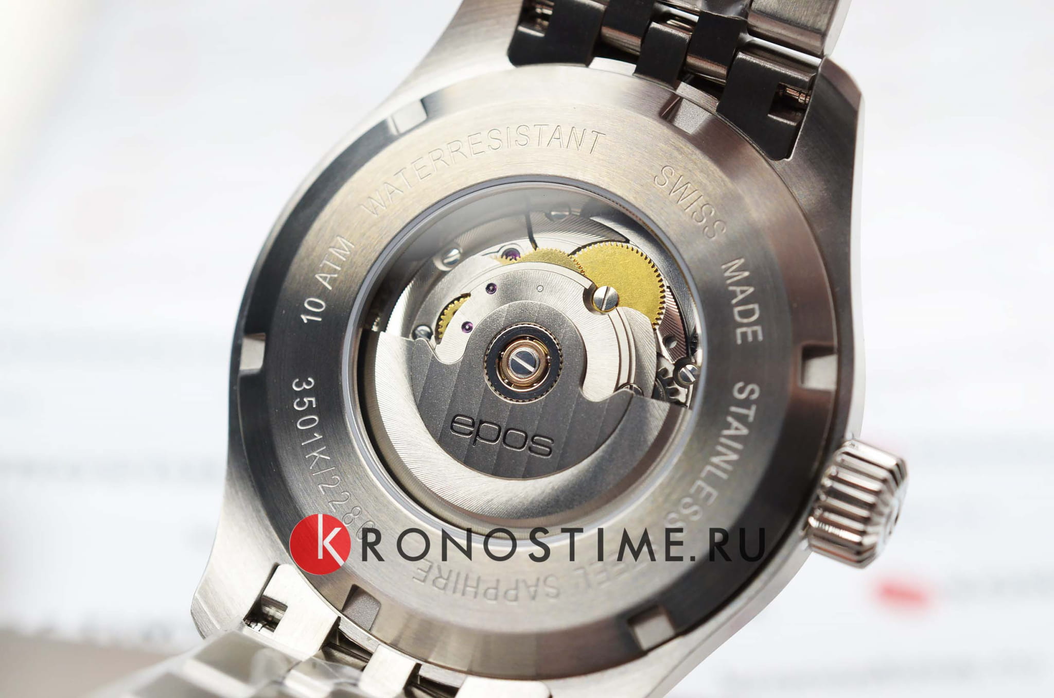 Мужские швейцарские Epos Emotion 3501.132.20.15.30, механический механизм (автоматический калибр) с высокой точностью. Сапфировое стеклоСапфировое стеклоПрочный и надёжный материал из кристалла сапфира синтетического происхождения, характеризующийся особой твёрдостью и устойчивостью к царапинам и повреждениям. устойчивое к появлению царапин, обладающее высокой прозрачностью. Класс водозащиты: 100 метров, позволит плавать, нырять и заниматься другими водными видами спорта. Корпус часов изготовлен из стали. Раскладная застёжкаРаскладная застёжкаТакой тип застёжки используется только на браслетах из металла. Она никогда не раскрывается полностью, происходит разделение на 2 и более частей. Раскладывающая застёжка снизит вероятность потери часов к минимуму..