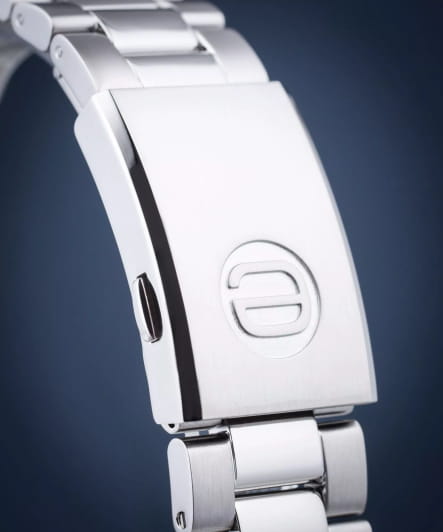 Мужские механические часы с автоподзаводом Epos из коллекции Diver - это профессиональный дайверский инструмент с швейцарским качеством. Корпус диаметром 42 мм и толщиной 14 мм выполнен из нержавеющей стали 316L. Циферблат белого цвета оформлен метками в виде точек и штрихов. Циферблат защищён сапфировым стекломСапфировое стеклоПрочный и надёжный материал из кристалла сапфира синтетического происхождения, характеризующийся особой твёрдостью и устойчивостью к царапинам и повреждениям.. Стрелки и метки с люминесцентным покрытиемЛюминесцентное покрытиеПозволяет считывать показания времени в темноте. Производители наносят на стрелки, часовые индексы, безель или поверхность циферблата светонакопительный состав, дающий холодное свечение., обеспечивающим отличную читаемость в темноте. Механизм — швейцарский калибр Sellita SW200 с запасом хода 38 часов. Окошко даты с увеличительным стеклом расположено в положении 3 часов. БезельБезельВнешний ободок, закрепляющий стекло. В спортивных часах так называется поворотное кольцо с делениями на циферблате, выполняет роль таймера – замеряет отрезки времени на шкале. Неподвижный безель – элемент декора. Однонаправленно вращающийся безель на дайверских часах позволяет фиксировать моменты погружения и выныривания на поверхность. — однонаправленный вращающийся, что обеспечивает безопасность при погружении. Завинчивающаяся коронка и автоматический гелиевый клапан позволяют использовать часы для глубоководных погружений. Часы оснащены стальным браслетом с раскладной застёжкойРаскладная застёжкаТакой тип застёжки используется только на браслетах из металла. Она никогда не раскрывается полностью, происходит разделение на 2 и более частей. Раскладывающая застёжка снизит вероятность потери часов к минимуму.. Водонепроницаемость 500 м соответствует требованиям для дайвинга. Гарантия — 24 месяца. Идеальный выбор для тех, кто ценит надёжность, точность и экстремальные испытания.