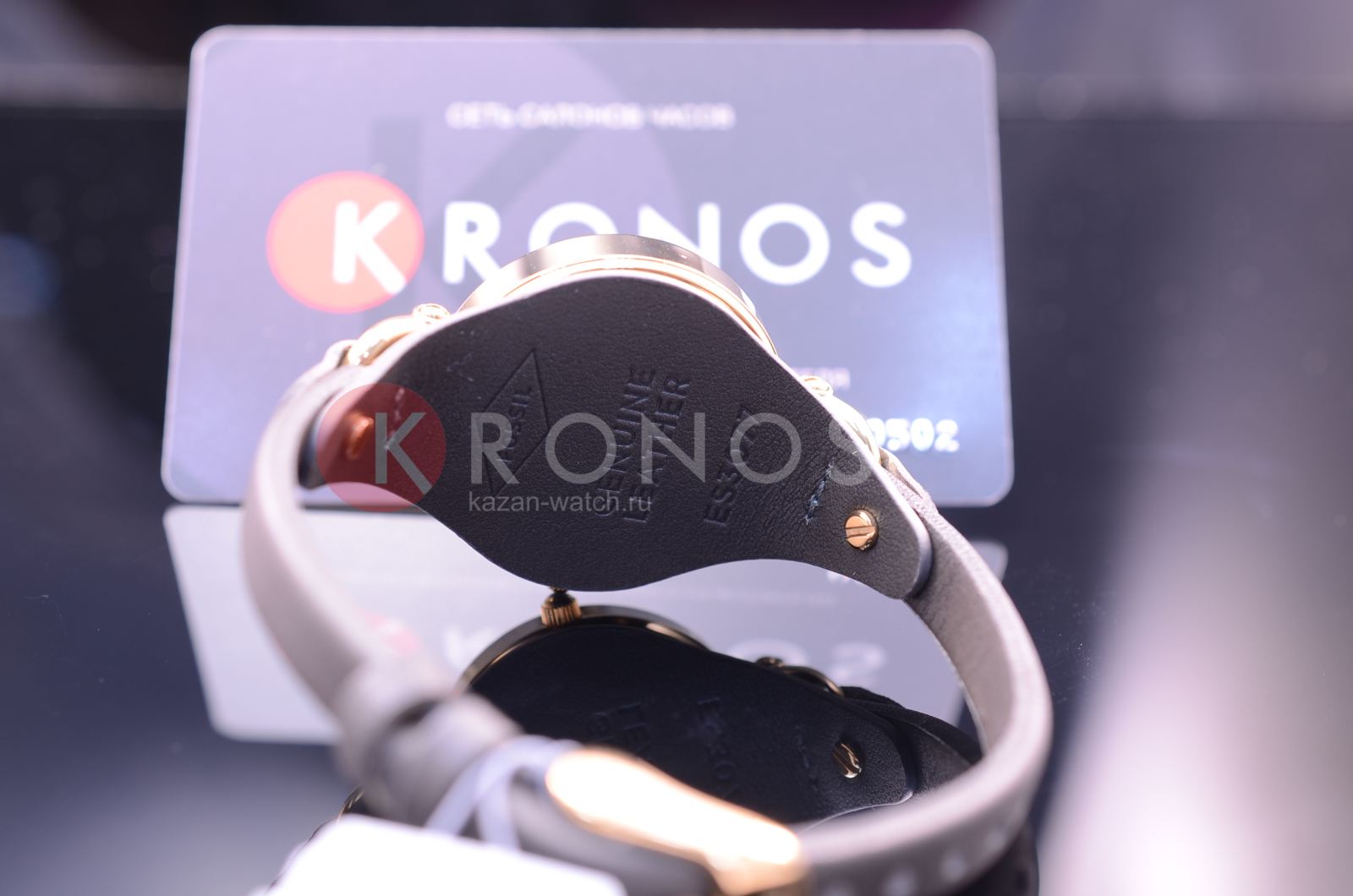 Стильные кварцевые женские наручные часы в стальном корпусе со стойким PVD покрытием на ремешке из натуральной кожи темно-серого цвета.