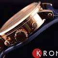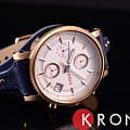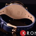 Элегантные женские кварцевые часы-хронограф в стальном круглом корпусе и сплошным кожаным ремешком-напульсником, с секундомером и календарем.