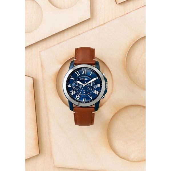 Наручные часы от популярного американского бренда Fossil - они будут замечательно смотреться как с повседневным стилем одежды, так и костюмом;  браслет: кожа; корпус: сталь; цвет браслета: бежевый; цвет корпуса: синий; цвет циферблата: синий; ширина браслета: 22MM; водонепроницаемость: 5 ATM; диаметр корпуса: 44MM