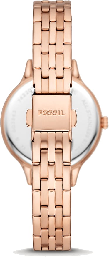 Женские наручные часы с минеральным стекломМинеральное стеклоМинеральное стекло представляет собой искусственно выращенный минерал кварца. Такое стекло отличается особой устойчивостью к повреждениям и царапинам. Уступает по некоторым качествам сапфировому стеклу. Fossil Laney BQ3862, кварцевый механизм с высокой точностью. Класс водозащиты: 50 метров, позволит защитить корпус от случайных брызг или капель дождя. БезельБезельВнешний ободок, закрепляющий стекло. В спортивных часах так называется поворотное кольцо с делениями на циферблате, выполняет роль таймера – замеряет отрезки времени на шкале. Неподвижный безель – элемент декора. Однонаправленно вращающийся безель на дайверских часах позволяет фиксировать моменты погружения и выныривания на поверхность. и браслет часов изготовлен из стали IP-покрытиемIP-покрытиеМетод ионного напыления. Демонстрирует повышенную устойчивость к истиранию, окислению и химическим веществам. Под воздействием высокого давления и температуры около 1500°C молекулы металла надёжно соединяются с частицами корпуса часов.. Метки в виде кристаллов. Рифленая заводная головка. Корпус из стали с IP-покрытиемIP-покрытиеМетод ионного напыления. Демонстрирует повышенную устойчивость к истиранию, окислению и химическим веществам. Под воздействием высокого давления и температуры около 1500°C молекулы металла надёжно соединяются с частицами корпуса часов.. Браслет с раскладной застёжкойРаскладная застёжкаТакой тип застёжки используется только на браслетах из металла. Она никогда не раскрывается полностью, происходит разделение на 2 и более частей. Раскладывающая застёжка снизит вероятность потери часов к минимуму..