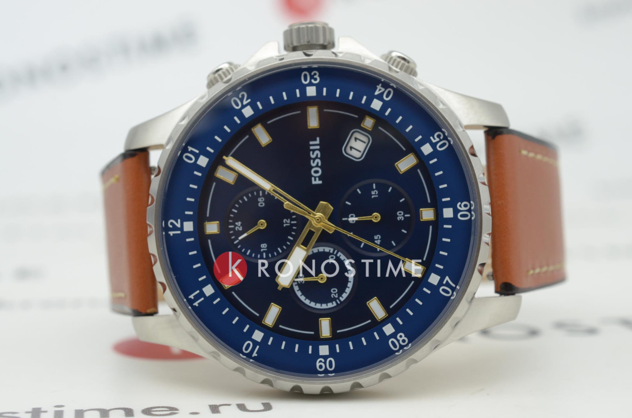 Мужские кварцевые часы Fossil Dillinger FS5675 — это стильный хронографХронографФункция позволяет измерять отрезки времени с особой точностью: часы, минуты, секунды. Верным признаком хронографа является наличие на циферблате 3 дополнительных окошек-счётчиков., сочетающий в себе элегантность и функциональность. Модель выполнена из нержавеющей стали серебристого цвета, диаметром 48 мм, что придаёт ей устойчивость к царапинам и благородный внешний вид. Циферблат защищен минеральным стекломМинеральное стеклоМинеральное стекло представляет собой искусственно выращенный минерал кварца. Такое стекло отличается особой устойчивостью к повреждениям и царапинам. Уступает по некоторым качествам сапфировому стеклу., устойчивым к повреждениям. Стрелки и метки имеют люминесцентное покрытиеЛюминесцентное покрытиеПозволяет считывать показания времени в темноте. Производители наносят на стрелки, часовые индексы, безель или поверхность циферблата светонакопительный состав, дающий холодное свечение., обеспечивающее отличную читаемость даже в условиях слабого освещения. Три дополнительных циферблата, отображение 24-часового формата времени. Окошко даты находится в положении 4 часа. БезельБезельВнешний ободок, закрепляющий стекло. В спортивных часах так называется поворотное кольцо с делениями на циферблате, выполняет роль таймера – замеряет отрезки времени на шкале. Неподвижный безель – элемент декора. Однонаправленно вращающийся безель на дайверских часах позволяет фиксировать моменты погружения и выныривания на поверхность. с PVD-покрытиемPVDУльтратонкое покрытие наносится в технике вакуумного напыления, сочетает в себе нитрид титана особой прочности со слоем золота или оксида хрома. Несёт в себе декоративную или защитную функцию. синего цвета. Часы оснащены кварцевым механизмом, обеспечивающим точную работу и минимальное обслуживание. Водонепроницаемость 50 метров позволит защитить корпус от случайных брызг или капель дождя. Браслет из кожи оснащён стандартной застёжкой, обеспечивающий комфорт и надёжную фиксацию на запястье. Эти часы станут универсальным аксессуаром для тех, кто ценит сочетание стиля, функциональности и надёжности — идеальный выбор для повседневной носки и активного образа жизни.