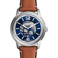 Скелетонизированные наручные часы Fossil Heritage ME3263 идеально подойдут для тех, кто ценит классический стиль, дополненный современными деталями, и ищет аксессуар, способный подчеркнуть их индивидуальность и элегантность. Мужские механические с автоподзаводом часы производятся в США. Корпус из нержавеющей стали диаметром 43 мм гарантирует долговечность и придает часам стильный и современный вид. Метки в виде штрихов и арабских цифр 6 и 12 придают циферблату классический акцент, а рифленая заводная головка облегчает настройку времени. Стрелки и метки с люминесцентным покрытиемЛюминесцентное покрытиеПозволяет считывать показания времени в темноте. Производители наносят на стрелки, часовые индексы, безель или поверхность циферблата светонакопительный состав, дающий холодное свечение. позволяют легко считывать время даже в условиях низкой освещенности. Кожаный ремешок на стандартной застёжке обеспечивает комфортное ношение и надежную фиксацию на запястье. Водозащита уровня 50WR защищает механизм от случайных брызг, а сапфировое стеклоСапфировое стеклоПрочный и надёжный материал из кристалла сапфира синтетического происхождения, характеризующийся особой твёрдостью и устойчивостью к царапинам и повреждениям. оберегает циферблат от царапин и повреждений. Прозрачная задняя крышка.