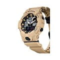 Аксессуар песочного оттенка подходит для людей, которые следят за здоровьем и регулярно посещают тренировки. Этому способствует шагомер со звуковым напоминанием об отсутствии активности и технология BluetoothBluetoothСовременная технология, позволяющая синхронизировать часы с телефоном и переносить данные. Часы с Bluetooth расширяют возможности вашего смартфона и делают его использование ещё более удобным. с низким потреблением энергии. Часы синхронизируются с приложением G-SHOCK Connected Phone, в котором можно установить ежедневную норму шагов, рассчитать сожжённые калории. Японский кварцевый механизм получает питание от аккумулятора, рассчитанного на 2 года службы. Противоударный корпусУдаропрочный корпусМеханизм заключён в корпус, выполненный из современных материалов, устойчивых к ударам, механическим повреждениям и падению с высоты: инновационный пластик, карбон, нержавеющая сталь, титан. из пластика. Функция перемещения стрелок для лёгкого доступа к данным на цифровых дисплеях. Включение и выключение звука кнопок. Полимерный ремешок. Минеральное стекло. Водонепроницаемость 200 метров. Автоматическая светодиодная подсветкаСветодиодная подсветкаСветодиодная или LED-подсветка обеспечивает появление яркого холодного свечения за счёт LED-элементов - маленьких лампочек. Они потребляют минимальное количество энергии, чаще всего можно встретить 1 светодиод, в нижней части циферблата., стрелки с люминесцентным покрытием NeobriteПодсветка NeobriteИспользование светонакопительных составов на основе сульфида цинка или алюмината стронция, яркий свет можно наблюдать на протяжении 6-10 часов после «зарядки» часов около источника света.. Возможности: секундомер с памятью на 200 кругов, мировое времяМировое время Полезное часовое усложнение, отображающее время в основных городах и известных областях по всему миру, оно связано с часовыми поясами, удобно для путешественников и бизнесменов. , таймер обратного отсчёта, 5 будильников, календарь до 2099 года, хронографХронографФункция позволяет измерять отрезки времени с особой точностью: часы, минуты, секунды. Верным признаком хронографа является наличие на циферблате 3 дополнительных окошек-счётчиков.. Габариты: 54,1 x 48,6 x 15,5 мм.