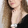 Изящные часы будут очаровательно сидеть на женском запястье. Гладкий, серебристый корпус из нержавеющей стали. Белый ремешок из силикона. Стильный и оригинальный циферблат. Водонепроницаемость в 10 WR. Минеральное стекло. Кварцевый механизм.