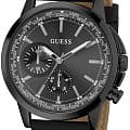 Мужские наручные часы с минеральным стекломМинеральное стеклоМинеральное стекло представляет собой искусственно выращенный минерал кварца. Такое стекло отличается особой устойчивостью к повреждениям и царапинам. Уступает по некоторым качествам сапфировому стеклу. Guess Spec GW0540G3, кварцевый механизм с высокой точностью. Класс водозащиты: 50 метров, позволит защитить корпус от случайных брызг или капель дождя. Корпус часов изготовлен из стали с IP-покрытиемIP-покрытиеМетод ионного напыления. Демонстрирует повышенную устойчивость к истиранию, окислению и химическим веществам. Под воздействием высокого давления и температуры около 1500°C молекулы металла надёжно соединяются с частицами корпуса часов.. Циферблат с метками в виде штрихов выполнен по технологии Sunray (солнечные лучи). 24-х часовой формат времени и число вынесены на отдельные циферблаты. Мировое времяМировое время Полезное часовое усложнение, отображающее время в основных городах и известных областях по всему миру, оно связано с часовыми поясами, удобно для путешественников и бизнесменов. . Заводная головка с защитой. Ремешок с классической застежкой. Стрелки с люминесцентным покрытиемЛюминесцентное покрытиеПозволяет считывать показания времени в темноте. Производители наносят на стрелки, часовые индексы, безель или поверхность циферблата светонакопительный состав, дающий холодное свечение..