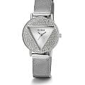 Женские наручные часы с минеральным стекломМинеральное стеклоМинеральное стекло представляет собой искусственно выращенный минерал кварца. Такое стекло отличается особой устойчивостью к повреждениям и царапинам. Уступает по некоторым качествам сапфировому стеклу. Guess GW0671L1, кварцевый механизм с высокой точностью. Класс водозащиты: 30 метров, позволит защитить корпус от случайных брызг или капель дождя. Корпус и браслет часов изготовлены из нержавеющей стали.