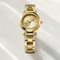 Часы Guess GW0869L4 — это обворожительный аксессуар, который станет настоящей изюминкой в образе стильной леди. Эти женские наручные часы оснащены надежным кварцевым механизмом. Круглый корпус из стали с золотистым IP-покрытиемIP-покрытиеМетод ионного напыления. Демонстрирует повышенную устойчивость к истиранию, окислению и химическим веществам. Под воздействием высокого давления и температуры около 1500°C молекулы металла надёжно соединяются с частицами корпуса часов., а безельБезельВнешний ободок, закрепляющий стекло. В спортивных часах так называется поворотное кольцо с делениями на циферблате, выполняет роль таймера – замеряет отрезки времени на шкале. Неподвижный безель – элемент декора. Однонаправленно вращающийся безель на дайверских часах позволяет фиксировать моменты погружения и выныривания на поверхность. часов инкрустирован кристаллами, придавая часам роскошный и изысканный вид. Золотистый гильошированный циферблат украшен метками в виде точек, дополненными кристаллами, что создает эффект мерцания и утонченности. Рифленая заводная головка обеспечивает удобство в настройке времени. Стальной браслет с золотистым IP-покрытиемIP-покрытиеМетод ионного напыления. Демонстрирует повышенную устойчивость к истиранию, окислению и химическим веществам. Под воздействием высокого давления и температуры около 1500°C молекулы металла надёжно соединяются с частицами корпуса часов. и ювелирной застежкой, также украшенный кристаллами, не только обеспечивает надежную фиксацию на запястье, но и добавляет элегантности и блеска. Часы имеют водозащиту 30WR, что позволяет не беспокоиться о случайном попадании воды. Минеральное стеклоМинеральное стеклоМинеральное стекло представляет собой искусственно выращенный минерал кварца. Такое стекло отличается особой устойчивостью к повреждениям и царапинам. Уступает по некоторым качествам сапфировому стеклу. защищает циферблат от царапин и повреждений. Диаметр корпуса составляет 30 мм, что делает эти часы идеальным выбором для тех, кто ценит изысканный стиль и внимание к деталям.