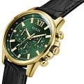 Стильные и функциональные часы Guess GW0901G4 оснащены кварцевым механизмом, что обеспечивает точность и надежность в использовании. Корпус выполнен из прочной стали с золотистым PVD-покрытиемPVDУльтратонкое покрытие наносится в технике вакуумного напыления, сочетает в себе нитрид титана особой прочности со слоем золота или оксида хрома. Несёт в себе декоративную или защитную функцию., придающей изделиям утонченный и современный вид. Циферблат украшен метками в виде штрихов и римской цифрой XII, обеспечивающими легкое считывание времени. Время отображается в двух форматах — 12-ти и 24-х часовом, что удобно для тех, кто привык к разным системам времени. Дополнительные циферблаты показывают дату и день недели, что позволяет всегда быть в курсе текущей даты без необходимости использования других устройств. Часы также оснащены тахиметромТахиметрРазмеченная шкала, располагается на ободке или безеле часов. Тахиметр позволяет рассчитать скорость на определённом участке пути, расстояние измеряется в километрах или милях., что добавляет им функциональности и может быть полезно для измерения скорости. Люминесцентное покрытиеЛюминесцентное покрытиеПозволяет считывать показания времени в темноте. Производители наносят на стрелки, часовые индексы, безель или поверхность циферблата светонакопительный состав, дающий холодное свечение. на стрелках и метках обеспечивает отличную видимость в темноте. Минеральное стеклоМинеральное стеклоМинеральное стекло представляет собой искусственно выращенный минерал кварца. Такое стекло отличается особой устойчивостью к повреждениям и царапинам. Уступает по некоторым качествам сапфировому стеклу. защищает циферблат от царапин и повреждений, а водозащита 50WR позволяет не волноваться о случайных контактах с водой, например, во время дождя. Кожаный черный ремешок с классической застежкой обеспечивает надежную фиксацию часов на руке и комфорт в ношении. Рифленая заводная головка с защитой добавляет изысканности и одновременно защищает механизм от повреждений. Эти часы идеально подойдут для тех, кто ценит стиль, функциональность и качество в одном аксессуаре.