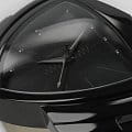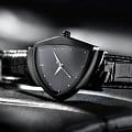 Корпус асимметричной треугольной формы (32,3 × 50,3 мм) выполнен из нержавеющей стали с чёрным PVD-покрытиемPVDУльтратонкое покрытие наносится в технике вакуумного напыления, сочетает в себе нитрид титана особой прочности со слоем золота или оксида хрома. Несёт в себе декоративную или защитную функцию., придающим часам стильный и футуристический вид. Циферблат защищён минеральным стекломМинеральное стеклоМинеральное стекло представляет собой искусственно выращенный минерал кварца. Такое стекло отличается особой устойчивостью к повреждениям и царапинам. Уступает по некоторым качествам сапфировому стеклу., устойчивым к повседневным повреждениям.