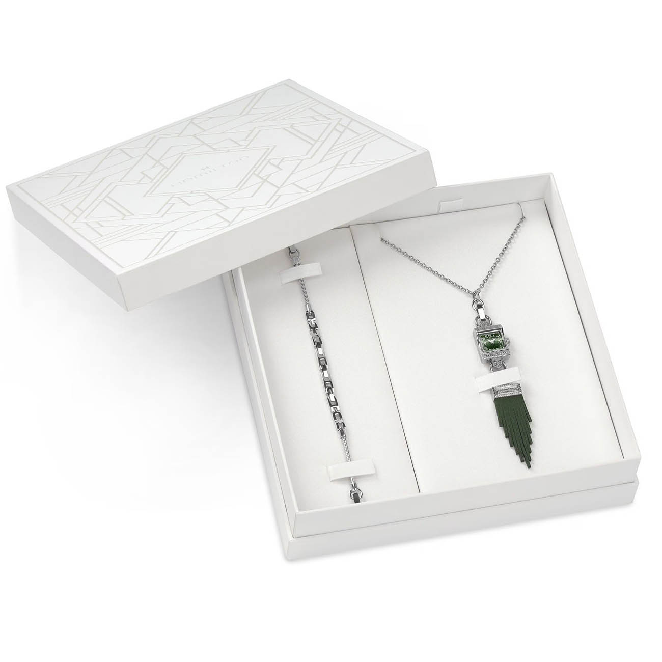 Элегантные женские часы-кулон Hamilton American Classic Lady Hamilton Necklace H31271160 воплощают стиль ар-деко 1930-х годов, сочетая функцию хронографа с изысканным ювелирным аксессуаром. Модель представлена в квадратном корпусе из нержавеющей стали (15×19 мм, толщина 8.05 мм) с сапфировым стекломСапфировое стеклоПрочный и надёжный материал из кристалла сапфира синтетического происхождения, характеризующийся особой твёрдостью и устойчивостью к царапинам и повреждениям., защищающим зеленый циферблат с солнечной отделкой и арабскими цифрами. Уникальная концепция позволяет носить аксессуар двумя способами: как часы с цепочкой-браслетом или как элемент ожерелья с регулируемой цепью. Кварцевый механизм Swiss ETA 280.002 гарантирует точность хода, а водонепроницаемость до 50 метров (5 ATM) обеспечивает защиту от бытовых воздействий. Комплект поставляется в эксклюзивной шкатулке с геометрическим орнаментом в стиле эпохи.