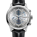 Мужские механические швейцарские часы-хронографХронографФункция позволяет измерять отрезки времени с особой точностью: часы, минуты, секунды. Верным признаком хронографа является наличие на циферблате 3 дополнительных окошек-счётчиков. с автоподзаводом Hamilton American Classic RailRoad Auto Chrono H40656781. Корпус часов изготовлен из нержавеющей стали. Кожаный ремешок с раскладной застёжкойРаскладная застёжкаТакой тип застёжки используется только на браслетах из металла. Она никогда не раскрывается полностью, происходит разделение на 2 и более частей. Раскладывающая застёжка снизит вероятность потери часов к минимуму.. Сапфировое стеклоСапфировое стеклоПрочный и надёжный материал из кристалла сапфира синтетического происхождения, характеризующийся особой твёрдостью и устойчивостью к царапинам и повреждениям. устойчивое к мелким механическим повреждениям. Класс водозащиты: 50 метров, позволит защитить корпус от случайных брызг или капель дождя. Окошки дня недели и даты находятся в положении 4 часа.