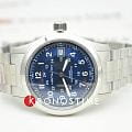 Hamilton Khaki Field Auto H70455140 — компактные полевые часы с военной эстетикой, надёжным механизмом и универсальным дизайном. Корпус диаметром 38 мм выполнен из нержавеющей стали с сатинированной отделкой. Прозрачная задняя крышка позволяет видеть работу механизма. Циферблат защищён сапфировым стекломСапфировое стеклоПрочный и надёжный материал из кристалла сапфира синтетического происхождения, характеризующийся особой твёрдостью и устойчивостью к царапинам и повреждениям. с антибликовым покрытиемАнтибликовое покрытиеСлой оксида металла в 0,13-0,3 микрон, благодаря которому стекло часов не бликует и не отражает свет. Антибликовое покрытие уменьшает отражение света в 10 раз, обеспечивая отличную читаемость показателей циферблата.. Синий циферблат с эффектом солнечных лучей оформлен в духе классических полевых часов: крупные арабские цифры, 24-часовая шкала, дата на позиции «3 часа». Стрелки и метки покрыты люминесцентным покрытиемЛюминесцентное покрытиеПозволяет считывать показания времени в темноте. Производители наносят на стрелки, часовые индексы, безель или поверхность циферблата светонакопительный состав, дающий холодное свечение. для читаемости в темноте. Внутри установлен автоматический механизм H-10 с запасом хода до 80 часов. Модель укомплектована браслетом из нержавеющей стали с раскладной застёжкойРаскладная застёжкаТакой тип застёжки используется только на браслетах из металла. Она никогда не раскрывается полностью, происходит разделение на 2 и более частей. Раскладывающая застёжка снизит вероятность потери часов к минимуму., обеспечивающей удобную посадку и надёжность. Водонепроницаемость 100 метров делает часы подходящими как для повседневной носки, так и для активного образа жизни. Khaki Field Auto 38 мм — это проверенная временем классика в современном исполнении.