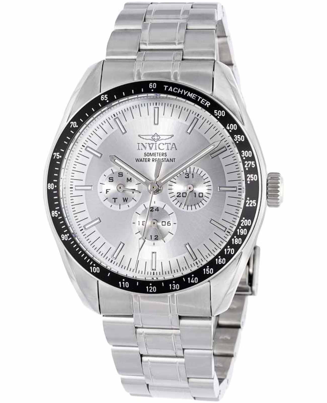 Мужские наручные часы Invicta Specialty IN45966 из коллекции Specialty сочетают в себе спортивный дизайн и надежность современных технологий . Модель обладает круглым корпусом диаметром 44 мм, изготовленным из нержавеющей стали, что обеспечивает высокую устойчивость к внешним воздействиям . БезельБезельВнешний ободок, закрепляющий стекло. В спортивных часах так называется поворотное кольцо с делениями на циферблате, выполняет роль таймера – замеряет отрезки времени на шкале. Неподвижный безель – элемент декора. Однонаправленно вращающийся безель на дайверских часах позволяет фиксировать моменты погружения и выныривания на поверхность. с IP-покрытиемIP-покрытиеМетод ионного напыления. Демонстрирует повышенную устойчивость к истиранию, окислению и химическим веществам. Под воздействием высокого давления и температуры около 1500°C молекулы металла надёжно соединяются с частицами корпуса часов. придает часам дополнительную элегантность . Браслет также выполнен из нержавеющей стали с раскладывающейся застежкойРаскладная застёжкаТакой тип застёжки используется только на браслетах из металла. Она никогда не раскрывается полностью, происходит разделение на 2 и более частей. Раскладывающая застёжка снизит вероятность потери часов к минимуму., гарантирующей комфортное ношение и безопасность . Черный циферблат дополнен метками и светящимися стрелками с люминесцентным покрытиемЛюминесцентное покрытиеПозволяет считывать показания времени в темноте. Производители наносят на стрелки, часовые индексы, безель или поверхность циферблата светонакопительный состав, дающий холодное свечение., которые обеспечивают отличную видимость даже в темное время суток . Для защиты используется минеральное стеклоМинеральное стеклоМинеральное стекло представляет собой искусственно выращенный минерал кварца. Такое стекло отличается особой устойчивостью к повреждениям и царапинам. Уступает по некоторым качествам сапфировому стеклу., оснащенное антибликовым покрытием, что делает его устойчивым к царапинам и бликам . Часы оснащены кварцевым механизмом, что гарантирует точность хода без необходимости подзаводки . Водонепроницаемость модели достигает 50 метров (5 атмосфер), что позволяет использовать их в повседневной жизни, включая контакт с водой, например, при мытье рук или дожде. Сочетание практичности, надежности и стильного дизайна делает эту модель универсальным аксессуаром как для повседневной носки, так и для занятий спортом.