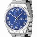 Мужские наручные часы Invicta Specialty IN47423 сочетают в себе классический дизайн и надежность современных технологий . Модель обладает круглым корпусом, выполненным из нержавеющей стали, что обеспечивает высокую устойчивость к внешним воздействиям. БезельБезельВнешний ободок, закрепляющий стекло. В спортивных часах так называется поворотное кольцо с делениями на циферблате, выполняет роль таймера – замеряет отрезки времени на шкале. Неподвижный безель – элемент декора. Однонаправленно вращающийся безель на дайверских часах позволяет фиксировать моменты погружения и выныривания на поверхность. украшен рифленой отделкой, придающей часам дополнительную элегантность . Браслет также изготовлен из нержавеющей стали и оснащен раскладывающейся застежкойРаскладной замокДанный вариант застежки используется только на часах с металлическим браслетом. Отличительная особенность такого крепления в том, что длина браслета становится универсальной и вы можете самостоятельно отрегулировать нужный вам размер – застежка просто двигается по браслету часов., гарантирующей комфортное ношение и безопасность . Синий циферблат дополнен метками в виде римских цифр. 12-ти и 24-х часовой формат времени и дата вынесены на отдельные циферблаты. Для защиты используется минеральное стеклоМинеральное стеклоМинеральное стекло представляет собой искусственно выращенный минерал кварца. Такое стекло отличается особой устойчивостью к повреждениям и царапинам. Уступает по некоторым качествам сапфировому стеклу., которое обеспечивает прочность и устойчивость к царапинам. Часы оснащены кварцевым механизмом калибра Seiko TMI VH61, что гарантирует точность хода без необходимости подзаводки. Водонепроницаемость модели достигает 50 метров (5 атмосфер), что позволяет использовать их в повседневной жизни, включая контакт с водой, например, при мытье рук или дожде. Сочетание классического дизайна и функциональности делает эту модель универсальным аксессуаром для различных случаев жизни.