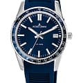 тахиметраТахиметрРазмеченная шкала, располагается на ободке или безеле часов. Тахиметр позволяет рассчитать скорость на определённом участке пути, расстояние измеряется в километрах или милях. вынесена на безельБезельВнешний ободок, закрепляющий стекло. В спортивных часах так называется поворотное кольцо с делениями на циферблате, выполняет роль таймера – замеряет отрезки времени на шкале. Неподвижный безель – элемент декора. Однонаправленно вращающийся безель на дайверских часах позволяет фиксировать моменты погружения и выныривания на поверхность.. В часах установлено ударопрочное минеральное стеклоМинеральное стеклоМинеральное стекло представляет собой искусственно выращенный минерал кварца. Такое стекло отличается особой устойчивостью к повреждениям и царапинам. Уступает по некоторым качествам сапфировому стеклу. Crystex. Повышенная водостойкость равна 10 атмосфер. Для создания ремешка был выбран силикон синего цвета. Силиконовый ремешок не деформируется со временем, не боится повышенной влажности и позволяет коже запястья дышать.