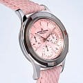 Женские часы Jacques Lemans Venice 1-2151D с минеральным стекломМинеральное стеклоМинеральное стекло представляет собой искусственно выращенный минерал кварца. Такое стекло отличается особой устойчивостью к повреждениям и царапинам. Уступает по некоторым качествам сапфировому стеклу., кварцевый механизм с высокой точностью. Часы- хронографХронографФункция позволяет измерять отрезки времени с особой точностью: часы, минуты, секунды. Верным признаком хронографа является наличие на циферблате 3 дополнительных окошек-счётчиков. с секундомеромСекундомерСекундоме́р — прибор, способный измерять интервалы времени с точностью до долей секунды.. БезельБезельВнешний ободок, закрепляющий стекло. В спортивных часах так называется поворотное кольцо с делениями на циферблате, выполняет роль таймера – замеряет отрезки времени на шкале. Неподвижный безель – элемент декора. Однонаправленно вращающийся безель на дайверских часах позволяет фиксировать моменты погружения и выныривания на поверхность. и корпус из нержавеющей стали. На циферблате расположены три дополнительных индикатора и окошко даты. Стрелки с люминесцентным покрытиемЛюминесцентное покрытиеПозволяет считывать показания времени в темноте. Производители наносят на стрелки, часовые индексы, безель или поверхность циферблата светонакопительный состав, дающий холодное свечение.. Каждая накладная риска украшена кристаллом Swarowski. Класс водозащиты: 50 метров, позволит защитить корпус от случайных брызг или капель дождя. Кожаный ремешок на стандартной застёжке.