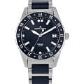 Часы с явными спортивными акцентами могут выглядеть элегантно. Крупный корпус диаметром 34 мм сделан из нержавеющей стали, на широкий безельБезельВнешний ободок, закрепляющий стекло. В спортивных часах так называется поворотное кольцо с делениями на циферблате, выполняет роль таймера – замеряет отрезки времени на шкале. Неподвижный безель – элемент декора. Однонаправленно вращающийся безель на дайверских часах позволяет фиксировать моменты погружения и выныривания на поверхность. вынесена дополнительная индикация. Точный кварцевый механизм отвечает за движение хорошо читаемых стрелок, покрытых люминесцентным составомЛюминесцентное покрытиеПозволяет считывать показания времени в темноте. Производители наносят на стрелки, часовые индексы, безель или поверхность циферблата светонакопительный состав, дающий холодное свечение.. Таким же образом выделены и индексы, поэтому время по этим часам легко определить даже в темноте. В положении «3 часа» находится окошко даты. Еще одна спортивная составляющая — повышенная водостойкость, равная 10 атмосфер: в часах можно плавать. Вместе с этим, модель идеально впишется и в классический образ, и в повседневный. Особая деталь — звенья браслета из высокотехнологичной керамикиВысокотехнологичная керамикаИнновационный запатентованный Rado материал с гладкой или матовой поверхностью. Керамика за счёт кристаллической структуры обладает повышенной устойчивостью от возникновения царапин. Материал способен принимать температуру тела человека, обеспечивая невероятный комфорт при ношении. синего цвета, в тон циферблату. Этот материал удобно носить даже в мороз: он быстро нагревается до комфортной температуры тела. К тому же, керамика стойко сопротивляется появлению микроцарапин. На браслет установлена раскладная застёжкаРаскладная застёжкаТакой тип застёжки используется только на браслетах из металла. Она никогда не раскрывается полностью, происходит разделение на 2 и более частей. Раскладывающая застёжка снизит вероятность потери часов к минимуму..