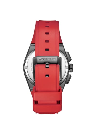 Часы-хронографаХронографФункция позволяет измерять отрезки времени с особой точностью: часы, минуты, секунды. Верным признаком хронографа является наличие на циферблате 3 дополнительных окошек-счётчиков. с секундомеромСекундомерСекундоме́р — прибор, способный измерять интервалы времени с точностью до долей секунды. Jacques Philippe JPQGC411841XR из коллекции Aurora — это гармоничное сочетание швейцарского качества, современного спортивного стиля и функциональности. Модель оснащена точным кварцевым механизмом калибра Ronda 5030.D, который гарантирует надежную работу и высокую точность хода. Корпус выполнен из прочной нержавеющей стали 316L с черным IP-покрытиемIP-покрытиеМетод ионного напыления. Демонстрирует повышенную устойчивость к истиранию, окислению и химическим веществам. Под воздействием высокого давления и температуры около 1500°C молекулы металла надёжно соединяются с частицами корпуса часов., устойчив к износу и сохраняет презентабельный вид даже при ежедневной эксплуатации. Сапфировое стеклоСапфировое стеклоПрочный и надёжный материал из кристалла сапфира синтетического происхождения, характеризующийся особой твёрдостью и устойчивостью к царапинам и повреждениям. с антибликовым покрытиемАнтибликовое покрытиеСлой оксида металла в 0,13-0,3 микрон, благодаря которому стекло часов не бликует и не отражает свет. Антибликовое покрытие уменьшает отражение света в 10 раз, обеспечивая отличную читаемость показателей циферблата. защищает черный циферблат от царапин и обеспечивает отличную читаемость информации при любом освещении. На циферблате расположены три дополнительных индикатора и окошко даты в положении между 4 и 5 часов, а стрелки с люминесцентным покрытиемЛюминесцентное покрытиеПозволяет считывать показания времени в темноте. Производители наносят на стрелки, часовые индексы, безель или поверхность циферблата светонакопительный состав, дающий холодное свечение. позволяют легко определить время даже в темноте. Комфорт в носке обеспечивает силиконовый ремешок шириной 27 мм на стандартной застежке, который плотно прилегает к запястью и отличается долговечностью. Водозащита 5 ATM позволяет не переживать за сохранность часов во время мытья рук или прогулок под дождём.