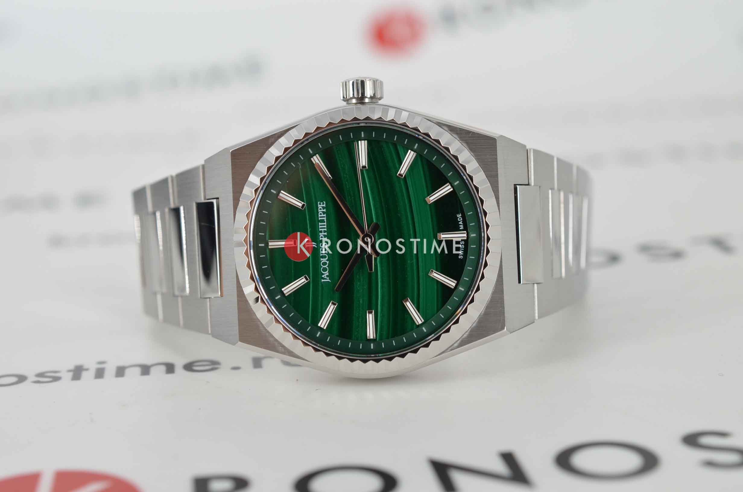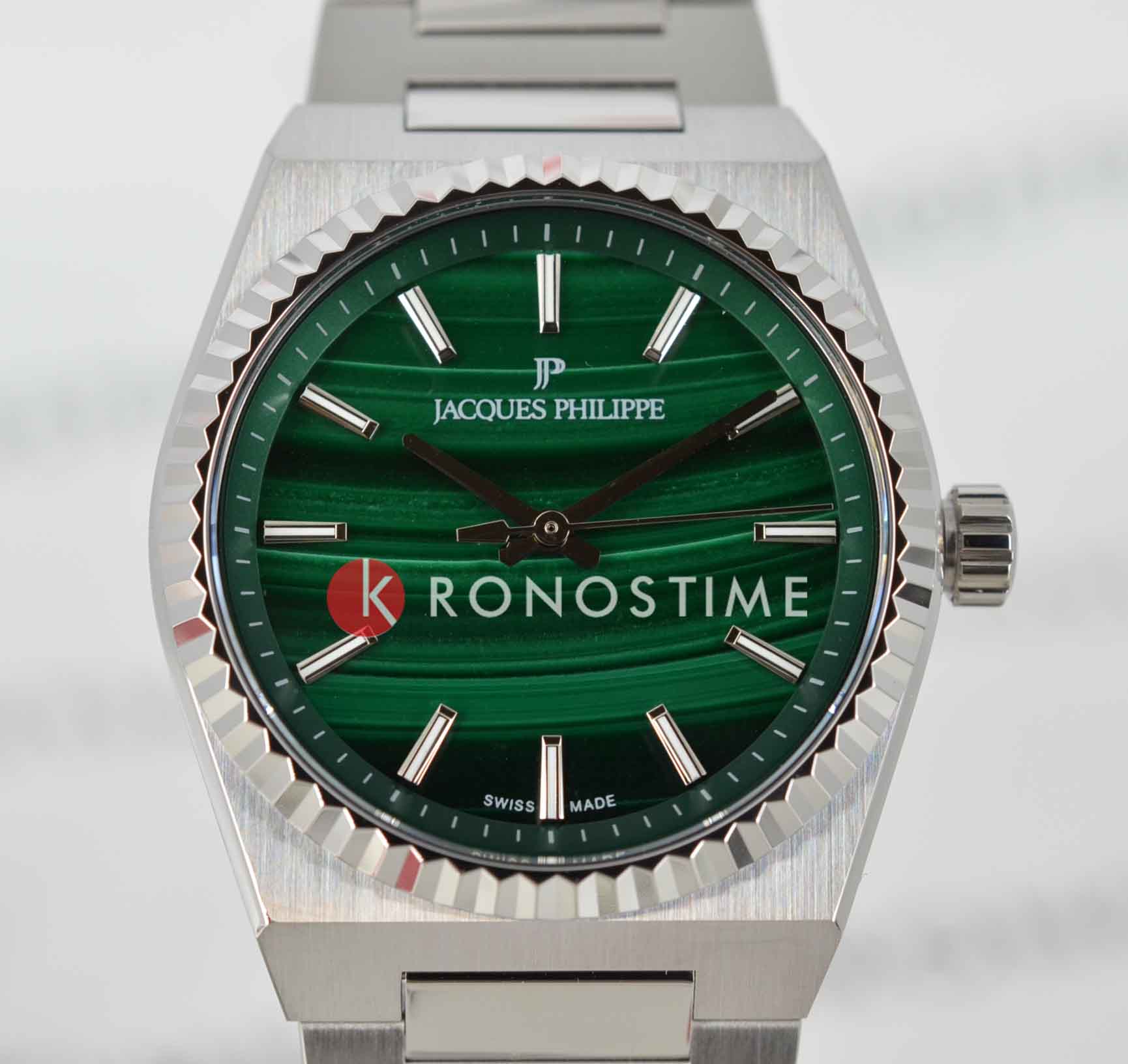 Часы Jacques Philippe JPQGLS5813X6MA из коллекции Borealis — элегантные женские часы, сочетающие в себе швейцарское качество и современный дизайн. Корпус диаметром 34 мм выполнен из нержавеющей стали, а зеленый циферблат защищён сапфировым стекломСапфировое стеклоПрочный и надёжный материал из кристалла сапфира синтетического происхождения, характеризующийся особой твёрдостью и устойчивостью к царапинам и повреждениям.. Внутри установлен швейцарский кварцевый механизм, обеспечивающий высокую точность хода. Водозащита 50 метров (5 ATM) защищает часы от брызг и дождя. Браслет из нержавеющей стали с застёжкой бабочкаЗастёжка "бабочка"Такой вид застёжки дополняется предохранителями, помогающими избежать случайного раскрытия браслета. Обладают изящным исполнением. обеспечивает комфортное ношение и надёжную фиксацию на запястье. Эти часы подойдут для тех, кто ценит сочетание элегантного дизайна и функциональности.