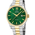 Часы Jaguar ESSENTIA J1043/3 - это воплощение элегантности и точности, созданное для современного мужчины. Эта швейцарская модель отличается изысканным дизайном и высоким качеством исполнения. Корпус часов выполнен из нержавеющей стали серебристого цвета, что придает им благородный и стильный вид. Циферблат защищен сапфировым стекломСапфировое стеклоПрочный и надёжный материал из кристалла сапфира синтетического происхождения, характеризующийся особой твёрдостью и устойчивостью к царапинам и повреждениям., которое славится своей прочностью и устойчивостью к царапинам, обеспечивая долговечность и безупречный внешний вид часов. Неподвижный золотистый безельБезельВнешний ободок, закрепляющий стекло. В спортивных часах так называется поворотное кольцо с делениями на циферблате, выполняет роль таймера – замеряет отрезки времени на шкале. Неподвижный безель – элемент декора. Однонаправленно вращающийся безель на дайверских часах позволяет фиксировать моменты погружения и выныривания на поверхность.. Браслет, также изготовленный из нержавеющей стали с золотистым PVD-покрытиемPVDУльтратонкое покрытие наносится в технике вакуумного напыления, сочетает в себе нитрид титана особой прочности со слоем золота или оксида хрома. Несёт в себе декоративную или защитную функцию., гармонично сочетается с корпусом, создавая целостный и утонченный образ. Диаметр корпуса составляет 40 мм, что делает часы идеальными для мужского запястья. Модель ESSENTIA J1043/3 оснащена швейцарским кварцевым механизмом, гарантирующим высокую точность хода, а также функцией отображения даты, что добавляет практичности этому стильному аксессуару. Часы Jaguar J1043/3 - это не просто инструмент для измерения времени, но и статусный аксессуар, который подчеркнет безупречный вкус и уверенность своего владельца. Они идеально подойдут как для деловых встреч, так и для особых случаев, всегда оставаясь верным спутником современного мужчины, ценящего качество и стиль. Браслет имеет скрытую застёжку «бабочка» с кнопкамиЗастёжка "бабочка"Такой вид застёжки дополняется предохранителями, помогающими избежать случайного раскрытия браслета. Обладают изящным исполнением. .