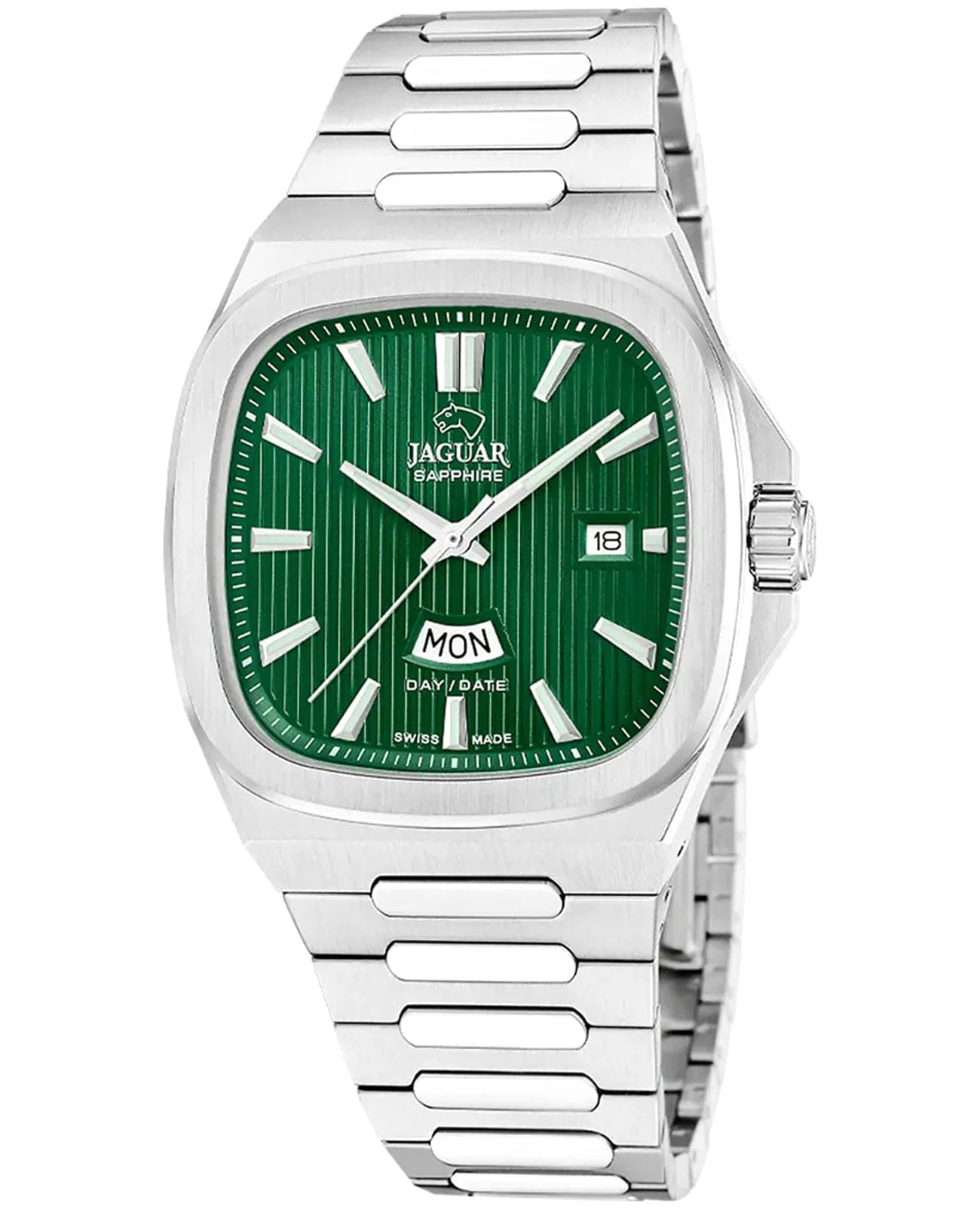 Мужские швейцарские часы Jaguar Rond Carre J1049/3 — это стильное сочетание элегантности и современного дизайна. Корпус из нержавеющей стали диаметром 41 мм идеально сбалансирован и элегантен. Сапфировое стеклоСапфировое стеклоПрочный и надёжный материал из кристалла сапфира синтетического происхождения, характеризующийся особой твёрдостью и устойчивостью к царапинам и повреждениям. с антибликовым покрытием защищает циферблат от царапин и обеспечивает отличную читаемость при любом освещении. Стальной браслет на застёжке-бабочке с кнопкамиЗастёжка "бабочка"Такой вид застёжки дополняется предохранителями, помогающими избежать случайного раскрытия браслета. Обладают изящным исполнением. идеально дополняют дизайн часов, обеспечивая комфортное ношение. Стрелки и метки на циферблате имеют люминесцентное покрытиеЛюминесцентное покрытиеПозволяет считывать показания времени в темноте. Производители наносят на стрелки, часовые индексы, безель или поверхность циферблата светонакопительный состав, дающий холодное свечение. позволяющее легко определять время даже в темноте. В часах есть функции отображение даты в позиции "3 часа" и дня недели на "6 часов" с помощью которой вы сможете измерять время с высокой точностью. Часы обладают водонепроницаемостью 50 метров, что позволит защитить корпус от случайных брызг или капель дождя.