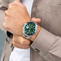 Мужские швейцарские часы Jaguar Executive Diver J860/B. Кварцевый швейцарский калибр Ronda 6003D. Сапфировое стеклоСапфировое стеклоПрочный и надёжный материал из кристалла сапфира синтетического происхождения, характеризующийся особой твёрдостью и устойчивостью к царапинам и повреждениям. устойчивое к мелким механическим повреждениям. Корпус и браслет часов изготовлены из нержавеющей стали. Стрелки и метки с люминесцентным покрытиемЛюминесцентное покрытиеПозволяет считывать показания времени в темноте. Производители наносят на стрелки, часовые индексы, безель или поверхность циферблата светонакопительный состав, дающий холодное свечение.. Окошко даты находится в положении 3 часа. Класс водозащиты: 200 метров, позволит плавать, нырять и заниматься другими водными видами спорта. Стальной браслет на раскладной застёжкеРаскладная застёжкаТакой тип застёжки используется только на браслетах из металла. Она никогда не раскрывается полностью, происходит разделение на 2 и более частей. Раскладывающая застёжка снизит вероятность потери часов к минимуму.. БезельБезельВнешний ободок, закрепляющий стекло. В спортивных часах так называется поворотное кольцо с делениями на циферблате, выполняет роль таймера – замеряет отрезки времени на шкале. Неподвижный безель – элемент декора. Однонаправленно вращающийся безель на дайверских часах позволяет фиксировать моменты погружения и выныривания на поверхность. с PVD-покрытиемPVDУльтратонкое покрытие наносится в технике вакуумного напыления, сочетает в себе нитрид титана особой прочности со слоем золота или оксида хрома. Несёт в себе декоративную или защитную функцию..