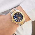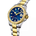 Унисекс швейцарские часы Jaguar Couple Diver J970/2. Кварцевый швейцарский калибр Ronda 6003.d. Сапфировое стеклоСапфировое стеклоПрочный и надёжный материал из кристалла сапфира синтетического происхождения, характеризующийся особой твёрдостью и устойчивостью к царапинам и повреждениям. устойчивое к мелким механическим повреждениям. Корпус часов изготовлен из нержавеющей стали. Стрелки и метки с люминесцентным покрытиемЛюминесцентное покрытиеПозволяет считывать показания времени в темноте. Производители наносят на стрелки, часовые индексы, безель или поверхность циферблата светонакопительный состав, дающий холодное свечение.. Окошко даты находится в положении 3 часа. Класс водозащиты: 200 метров, позволит плавать, нырять и заниматься другими водными видами спорта. Стальной браслет с частичным  PVD-покрытиемPVDУльтратонкое покрытие наносится в технике вакуумного напыления, сочетает в себе нитрид титана особой прочности со слоем золота или оксида хрома. Несёт в себе декоративную или защитную функцию. на раскладной застёжкеРаскладная застёжкаТакой тип застёжки используется только на браслетах из металла. Она никогда не раскрывается полностью, происходит разделение на 2 и более частей. Раскладывающая застёжка снизит вероятность потери часов к минимуму.. БезельБезельВнешний ободок, закрепляющий стекло. В спортивных часах так называется поворотное кольцо с делениями на циферблате, выполняет роль таймера – замеряет отрезки времени на шкале. Неподвижный безель – элемент декора. Однонаправленно вращающийся безель на дайверских часах позволяет фиксировать моменты погружения и выныривания на поверхность. с PVD-покрытиемPVDУльтратонкое покрытие наносится в технике вакуумного напыления, сочетает в себе нитрид титана особой прочности со слоем золота или оксида хрома. Несёт в себе декоративную или защитную функцию..