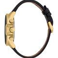 JUST CAVALLI JC1G346L0025 — стильные итальянские часы с функцией второй часовой поясВторой часовой поясФункция, позволяющая отображать время двух часовых поясов одновременно., которые сочетают в себе элегантность и современный функционал. Круглый корпус диаметром 45 мм выполнен из нержавеющей стали с PVD-покрытиеPVDУльтратонкое покрытие наносится в технике вакуумного напыления, сочетает в себе нитрид титана особой прочности со слоем золота или оксида хрома. Несёт в себе декоративную или защитную функцию., толщина корпуса составляет 12 мм, что придает модели выразительный внешний вид и надежную защиту от внешних воздействий. Часы оснащены кварцевым механизмом, также обладают функцией отображения даты, что делает их удобными для ежедневного использования. Минеральное стеклоМинеральное стеклоМинеральное стекло представляет собой искусственно выращенный минерал кварца. Такое стекло отличается особой устойчивостью к повреждениям и царапинам. Уступает по некоторым качествам сапфировому стеклу. защищает часы от царапин, а водозащита 50 метров идеально подходит для повседневного ношения. Кожаный ремешок на стандартной застёжке обеспечивает комфортное ношение.