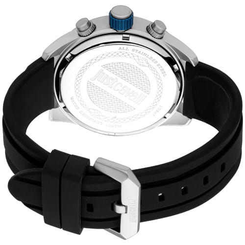 JUST CAVALLI JC1G347P0025 — стильные итальянские часы с функцией хронографаХронографФункция позволяет измерять отрезки времени с особой точностью: часы, минуты, секунды. Верным признаком хронографа является наличие на циферблате 3 дополнительных окошек-счётчиков., которые сочетают в себе элегантность и современный функционал. Круглый корпус диаметром 45 мм выполнен из нержавеющей стали, толщина корпуса составляет 12 мм, что придает модели выразительный внешний вид и надежную защиту от внешних воздействий. Часы оснащены кварцевым механизмом. Минеральное стеклоМинеральное стеклоМинеральное стекло представляет собой искусственно выращенный минерал кварца. Такое стекло отличается особой устойчивостью к повреждениям и царапинам. Уступает по некоторым качествам сапфировому стеклу. защищает часы от царапин, а водозащита 100 метров позволяет не снимать их во время плавания и занятий спортом. Силиконовый ремешок на стандартной застёжке обеспечивает комфортное ношение. Эта модель — идеальный выбор для тех, кто ценит современные технологии , классический стиль и качество.