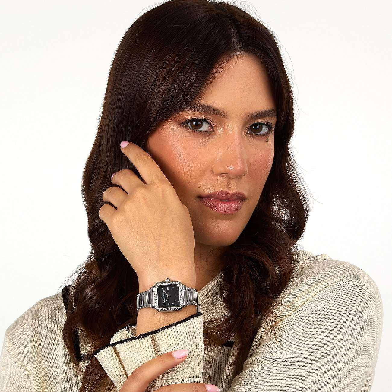 Женские элегантные часы Karl Lagerfeld Square Classics R0553102502, кварцевый механизм с высокой точностью. Минеральное стеклоМинеральное стеклоМинеральное стекло представляет собой искусственно выращенный минерал кварца. Такое стекло отличается особой устойчивостью к повреждениям и царапинам. Уступает по некоторым качествам сапфировому стеклу. устойчивое к появлению царапин, обладающее высокой прозрачностью. Изысканный корпус изготовлен из нержавеющей стали. Лаконичные центральные часовая, минутная стрелки. Водонепроницаемость 3 АТМ позволяет использовать часы в повседневных условиях — при мытье рук или под лёгким дождём. Браслет выполнен из стали и оснащён раскладной застёжкойРаскладная застёжкаТакой тип застёжки используется только на браслетах из металла. Она никогда не раскрывается полностью, происходит разделение на 2 и более частей. Раскладывающая застёжка снизит вероятность потери часов к минимуму., обеспечивающей комфорт и уверенную фиксацию на запястье, а также добавляя завершающий штрих к этому стильному аксессуару. БезельБезельВнешний ободок, закрепляющий стекло. В спортивных часах так называется поворотное кольцо с делениями на циферблате, выполняет роль таймера – замеряет отрезки времени на шкале. Неподвижный безель – элемент декора. Однонаправленно вращающийся безель на дайверских часах позволяет фиксировать моменты погружения и выныривания на поверхность. с кристаллами подчёркивают изысканный характер часов, создавая универсальный образ, подходящий как для повседневных ситуаций, так и для особых случаев.