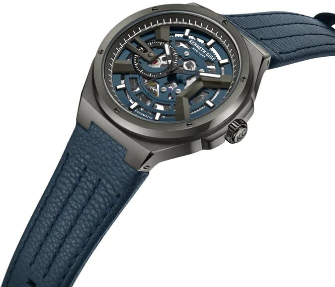 Мужские механические часы-скелетоны с минеральным стекломМинеральное стеклоМинеральное стекло представляет собой искусственно выращенный минерал кварца. Такое стекло отличается особой устойчивостью к повреждениям и царапинам. Уступает по некоторым качествам сапфировому стеклу. Kenneth Cole New York KCWGE0013702, механический механизм (автоматический калибр) с высокой точностью. Класс водозащиты: 30 метров, позволит защитить корпус от случайных брызг или капель дождя. Корпус часов изготовлен из стали с PVD-покрытиемPVDУльтратонкое покрытие наносится в технике вакуумного напыления, сочетает в себе нитрид титана особой прочности со слоем золота или оксида хрома. Несёт в себе декоративную или защитную функцию.. Кожаный ремешок на стандартной застёжке. Стрелки и метки с люминесцентным покрытиемЛюминесцентное покрытиеПозволяет считывать показания времени в темноте. Производители наносят на стрелки, часовые индексы, безель или поверхность циферблата светонакопительный состав, дающий холодное свечение..