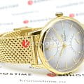 Мужские наручные часы Космос Космопорт K 058.20.33 — это сочетание традиций часового искусства 60-70-х годов и футуристического дизайна, вдохновленного космическими исследованиями. Они не только служат напоминанием о прошлом, но и побуждают задуматься о будущем, позволяя наслаждаться качеством и смыслом, вложенными в каждую деталь. Полированный корпус часов выполнен в виде силуэта летающей тарелки благодаря выпуклым формам стекла и нижней части корпуса. Стальные ушки, которые напоминают опоры летающей тарелки, завершает общий образ. На задней крышке часов выгравирован фантазийный сюжет – космическая станция будущего. Циферблат светло-серого цвета выполнен в ретро стиле с закруглёнными краями, что требует применения сложной технологии производства, характерной для часов прошлых лет. Кончик секундной стрелки повторяет эту форму, а на выпуклом градиентном циферблате выполнена шлифовка, напоминающая солнечные лучи. Индексы, изготовленные вручную и закрепленные на двух штифтах, добавляют изысканности. Также присутствуют ретроградные индикаторы даты и второго времени (24 часа), которые возвращаются в исходное положение одним движением.  Люминесцентное покрытиеЛюминесцентное покрытиеПозволяет считывать показания времени в темноте. Производители наносят на стрелки, часовые индексы, безель или поверхность циферблата светонакопительный состав, дающий холодное свечение. на часовой и минутной стрелках, а также на стрелках ретроградных индикаторов и окантовке циферблата создает эффект светящегося ореола в темноте. Форма минерального стеклаМинеральное стеклоМинеральное стекло представляет собой искусственно выращенный минерал кварца. Такое стекло отличается особой устойчивостью к повреждениям и царапинам. Уступает по некоторым качествам сапфировому стеклу., представляющего собой двояковыпуклую конструкцию, тщательно проработана. Такое стекло не искажает изображение на циферблате, потому что внутренняя поверхность остаётся плоской, создавая эффект линзы. Производственный процесс для достижения двух параллельно изогнутых поверхностей очень сложен, и требуется высокая точность, чтобы избежать повреждения стекла.  Часы комплектуются стальным браслетом миланского плетения, который дополнительно защищает от случайного падения. Корпус и браслет часов изготовлены из гипоаллергенной стали с IP-покрытиемIP-покрытиеМетод ионного напыления. Демонстрирует повышенную устойчивость к истиранию, окислению и химическим веществам. Под воздействием высокого давления и температуры около 1500°C молекулы металла надёжно соединяются с частицами корпуса часов., что обеспечивает комфорт при ношении. Заводная головка, застежка и ремешок украшены фирменным логотипом, подчеркивающим индивидуальность данной модели.